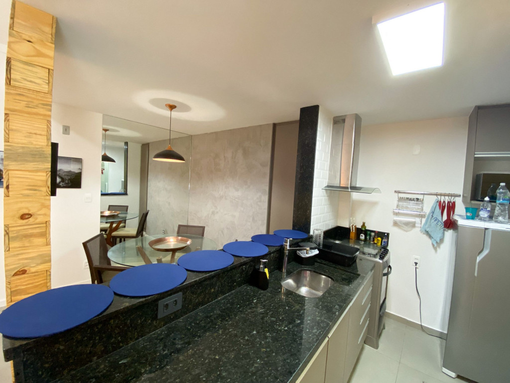- Cozinha equipada com fogão, máquina de lavar louça, geladeira, microondas, cafeteira, liquidificador, sanduicheira e utensílios em geral;