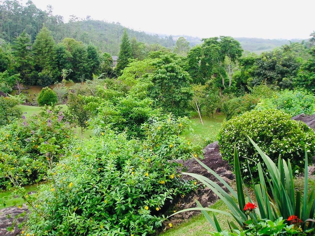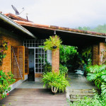 A varanda, com deck e uma ducha potente, enquadra a magnífica vista para a Serra da Mantiqueira e a Mata Atlântica.