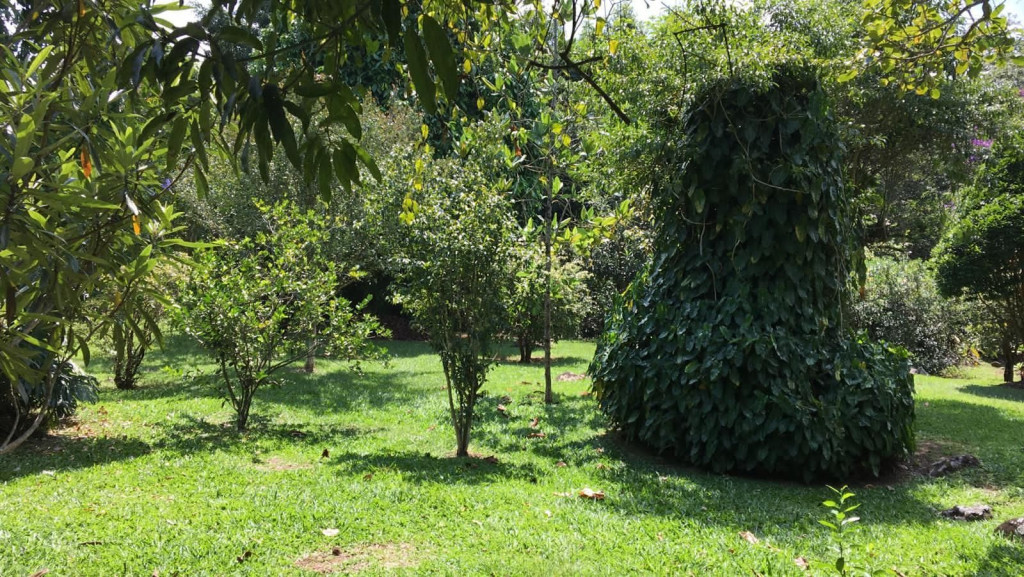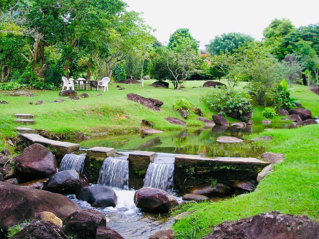 O exuberante jardim com árvores frutíferas é cortado por um riacho de águas cristalinas e conta com uma sauna aquecida à madeira e outra ducha.