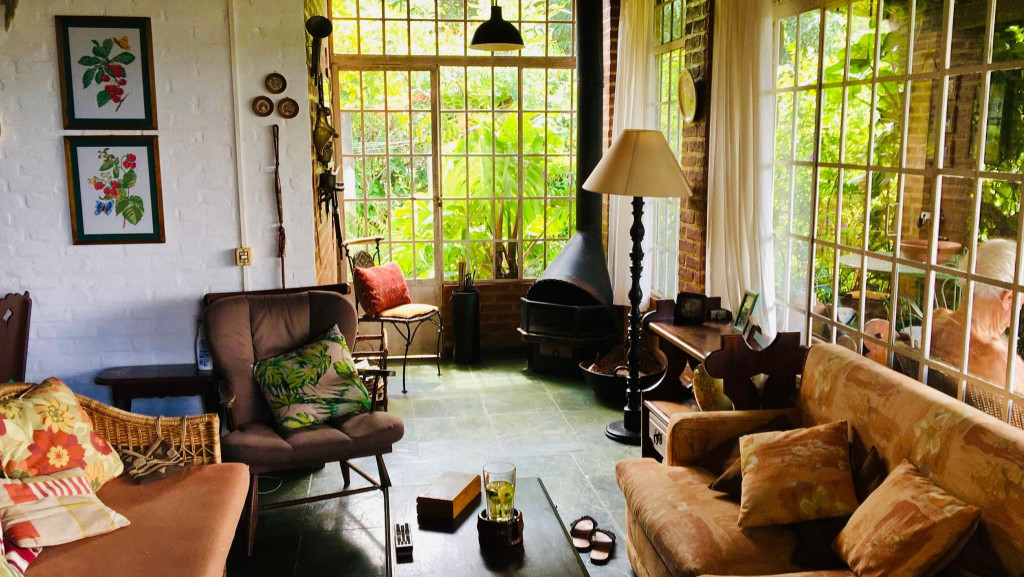 A Casa do Jardim tem 01 quarto com 2 camas de solteiro, um banheiro e ducha na varanda, e uma ótima sauna finlandesa.