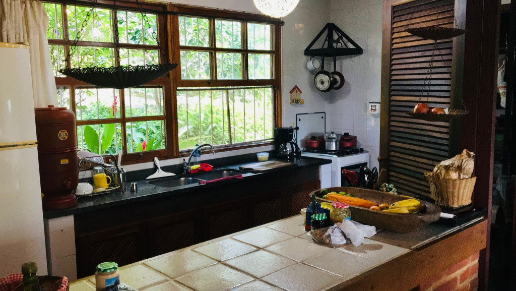 A casa tem Wi-Fi 5G, cozinha toda equipada, louças, talheres e micro-ondas.