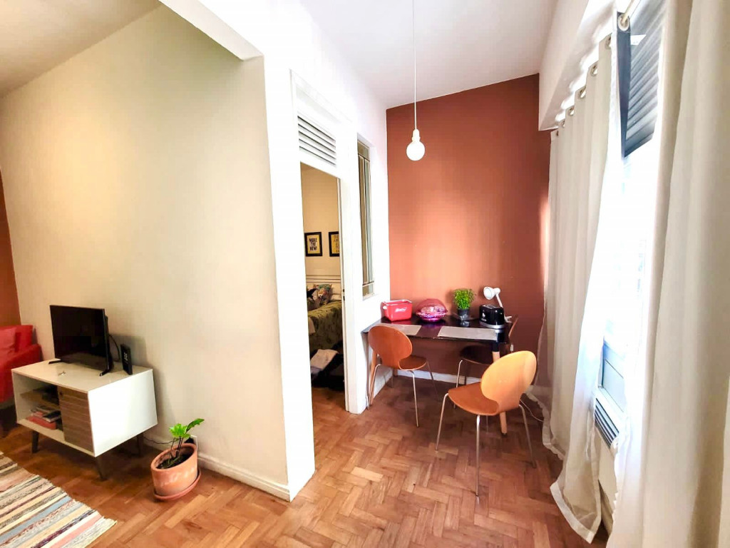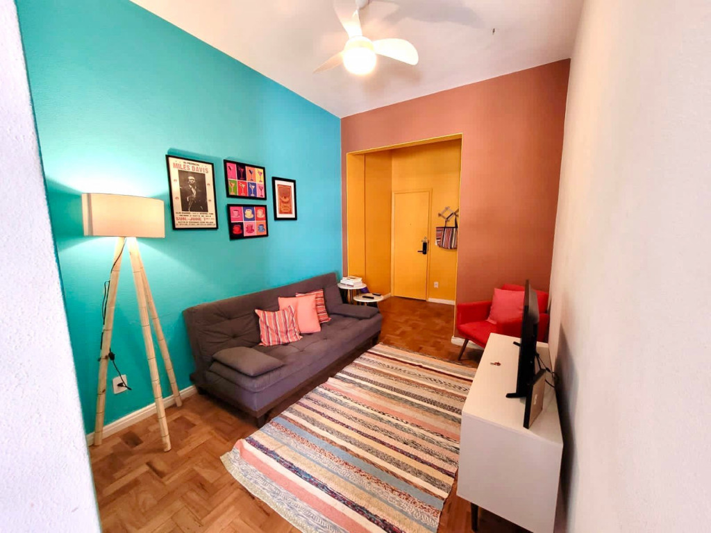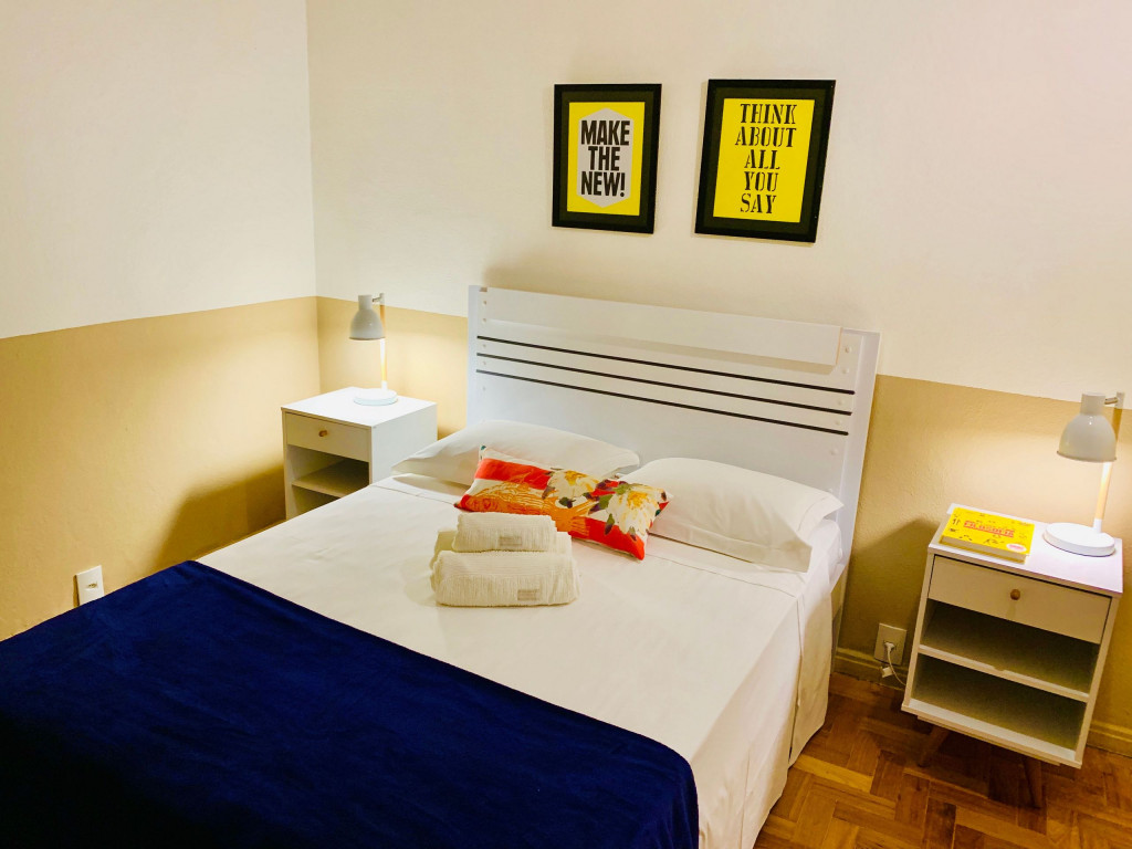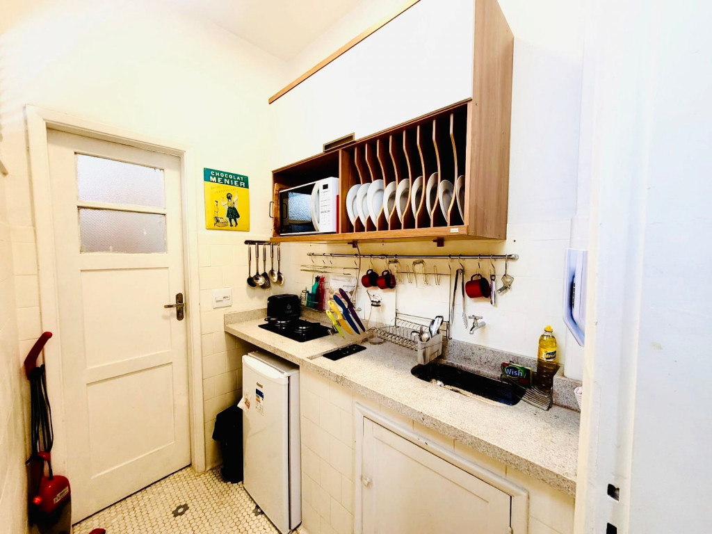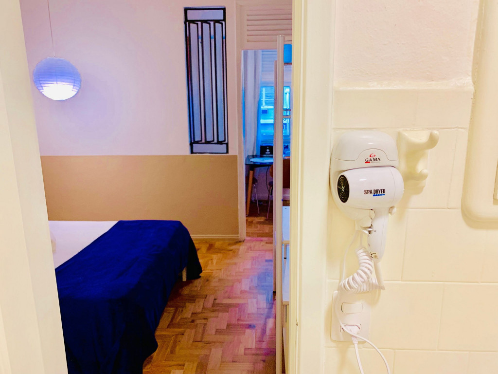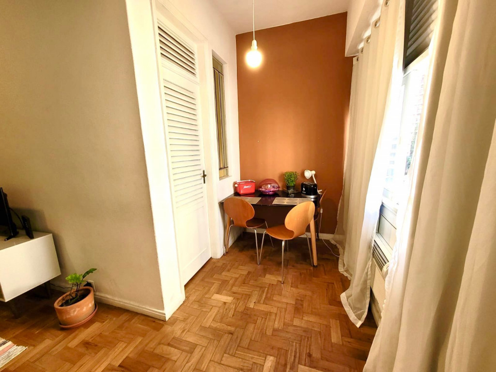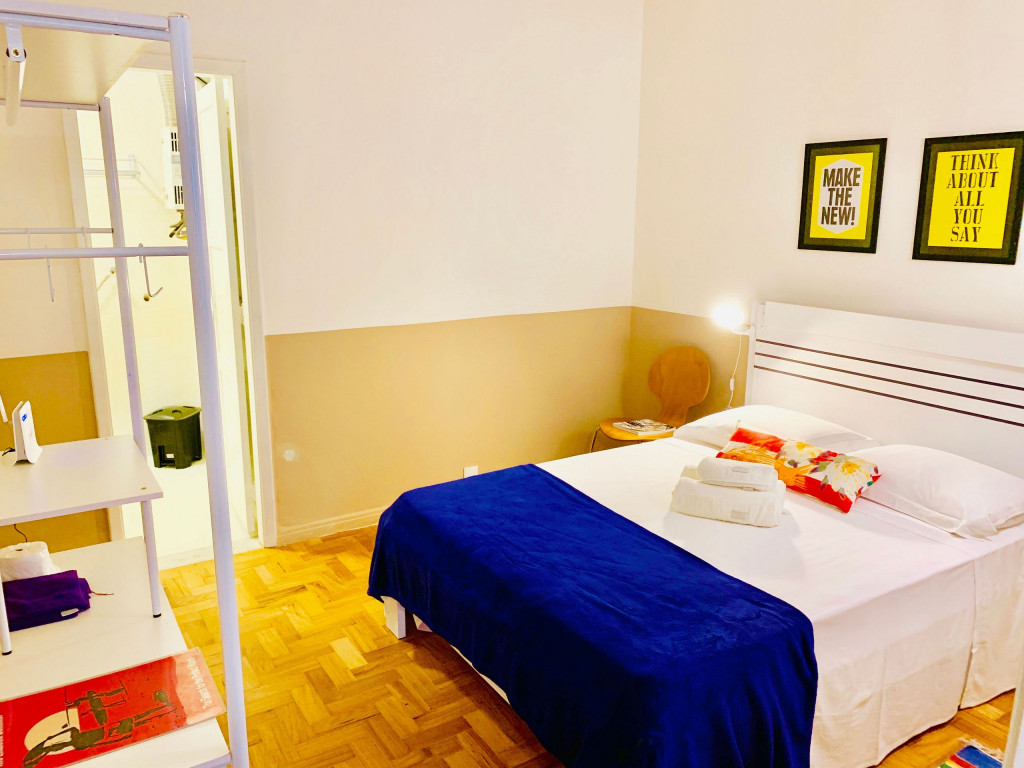 Localização perfeita a 10 metros da Praça General Osório, famosa por sua feira Hippie de domingo. 150 metros da praia de Ipanema 200 metros do Arpoador. A acomodação de 38m2, com capacidade para 3 pessoas, dispõe de ar-condicionado e TV a cabo na sala e no quarto com cama Queen. Na versão para 3 pessoas o sofá da sala se transforma em cama onde cabe 01 pessoa. Cozinha compacta equipada com um fogão por indução magnética, torradeira, chaleira elétrica e geladeira.