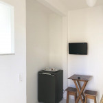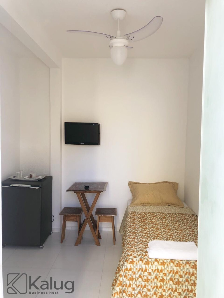 A suite possui cama de solteiro Ortobom, ventilador de teto, Tv, frigobar e mesa. Banheiro completo com chuveiro elétrico. Está localizada em um condomínio fechado com guarita 24hs na zona sul da cidade. Possui área de serviço compartilhada com outros hóspedes.