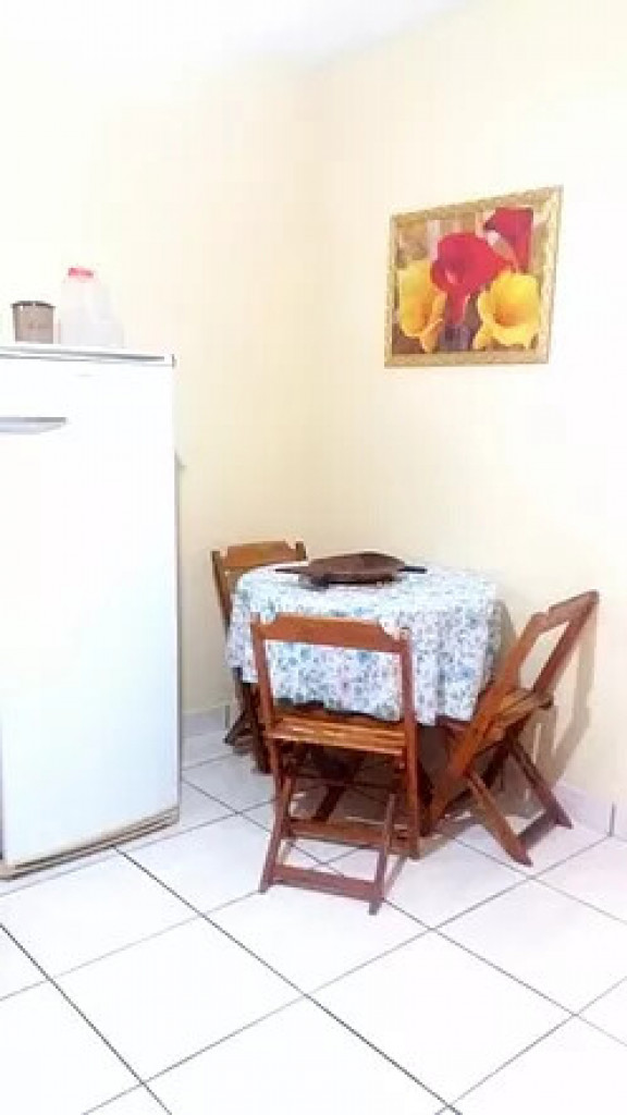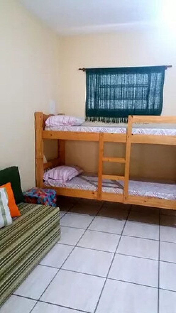 01 cama de casal, 01 bicama, 01 beliche, Conjugados, Sala de estar, Ventilador de teto, Cozinha c/ utensílios, Área de serviço (varal), Churrasqueira coletiva, 01 banheiro, Permite animais pequenos, TV digital - wi-fi, Varanda.