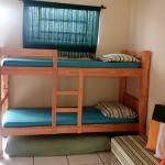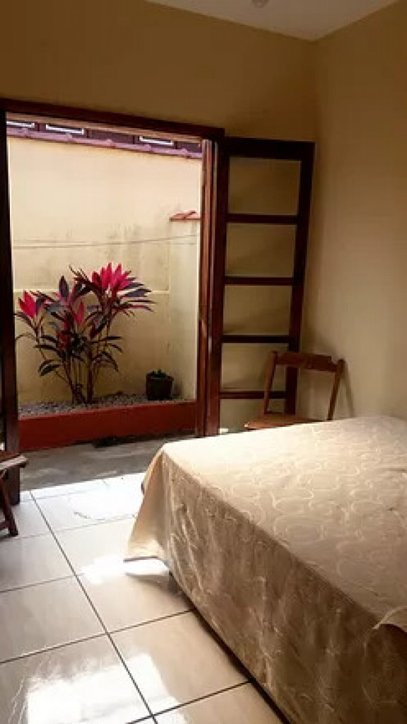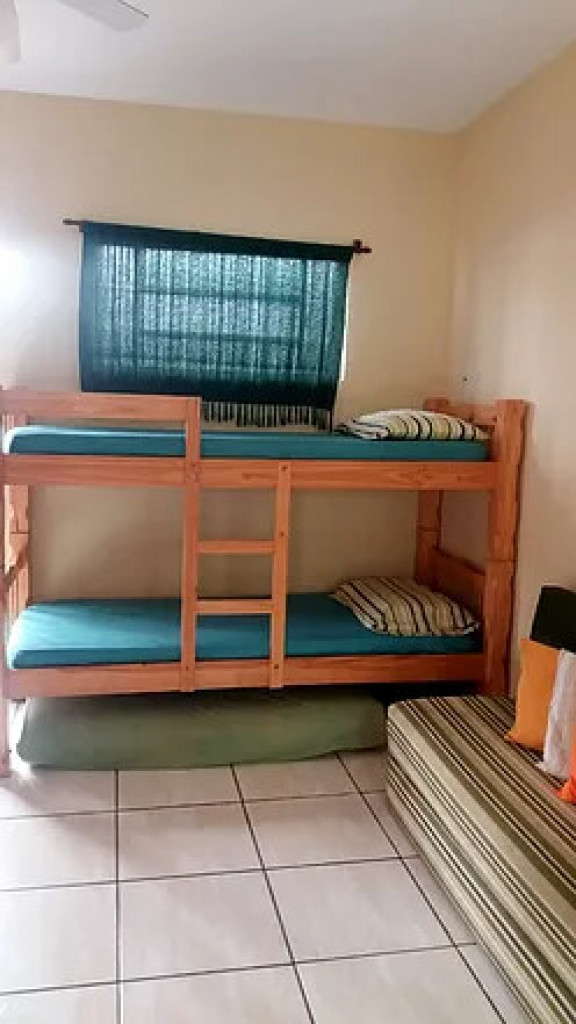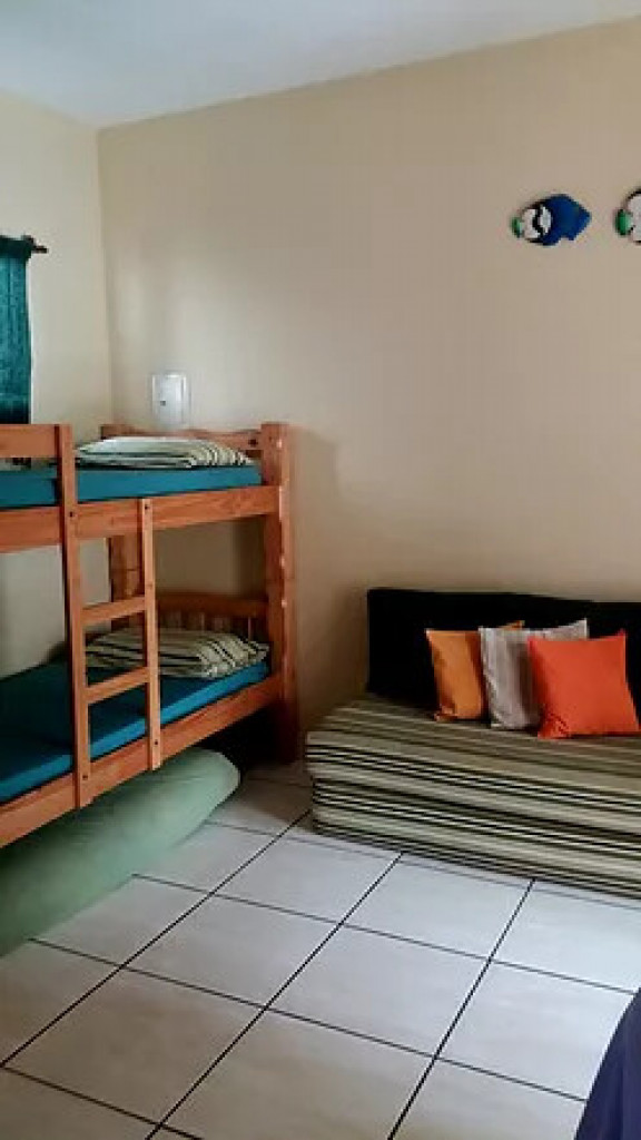 01 cama de casal, 01 bicama, 01 beliche, Conjugados, Sala de estar, Ventilador de teto, Cozinha c/ utensílios, Área de serviço (varal), Churrasqueira coletiva, 01 banheiro, Permite animais pequenos, TV digital - wi-fi, Varanda.