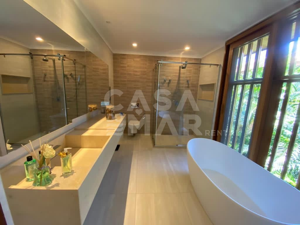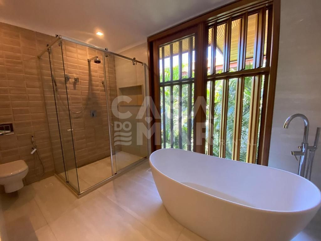 Linda casa de alto padrão próximo ao melhor clube da Praia do Forte, a 500 metros da praia, condomínio com toda a infraestrutura que você merece, com segurança 24h. Um dos destinos mais concorridos da Bahia, o condomínio Enseada do Castelo ainda disponibiliza de ciclovias, academia completamente esquipada, clube amplo, com quadras de tênis, e futebol, salão de jogos, pranchas de SUP e caiaques disponíveis, parque para crianças.A casa é composta por 5 quartos sendo 4 suítes, cozinha completa, sala de estar, sala de jantar, varanda, área gourmet e piscina ampla.Vaga para 4 automóveis.