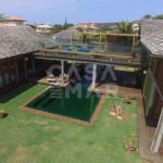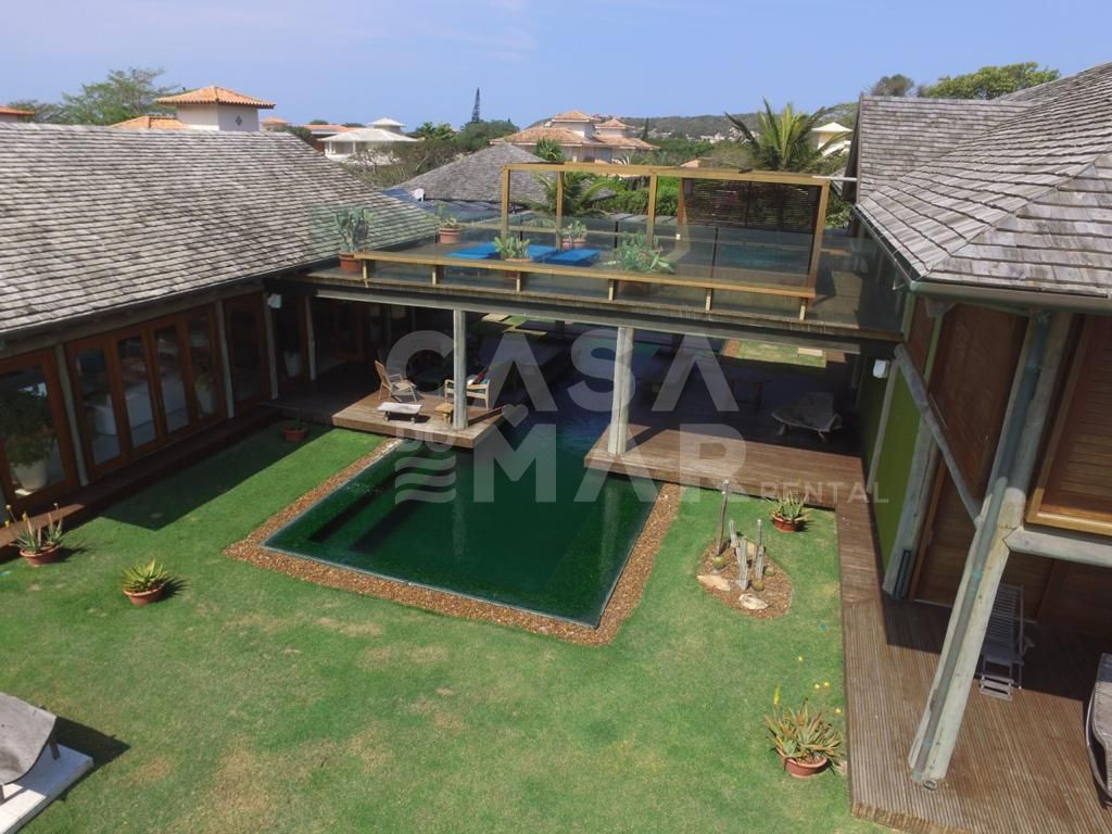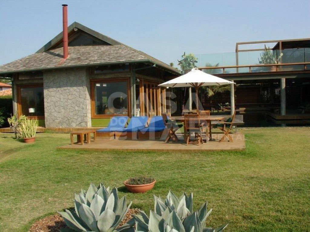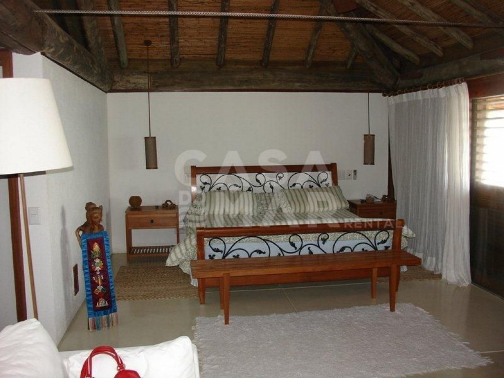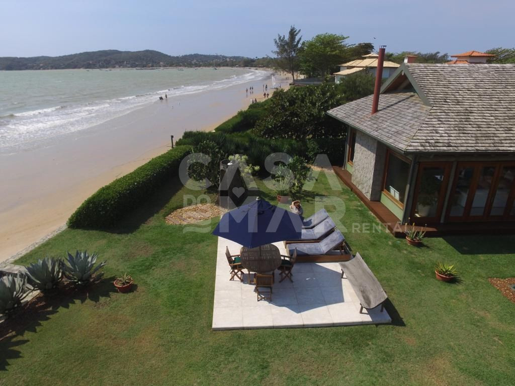 Linda casa localizada em Manguinhos, de frente pro mar, em condomínio super exclusivo.Condomínio com poucas casas, e todas lindíssimas.A casa oferece cinco amplas suítes, com ar condicionado, além de duas salas de estar, sala de jantar, sala de TV, e cozinha completíssima. A casa dividi-se em duas construções interligadas por uma lindíssima ponte, onde embaixo passa a piscina.Ampla área externa, com muita natureza, espaço gourmet com churrasqueira, linda piscina, e tudo isso no pé na areia da praia de Manguinhos.-Água e luz pago a parte.