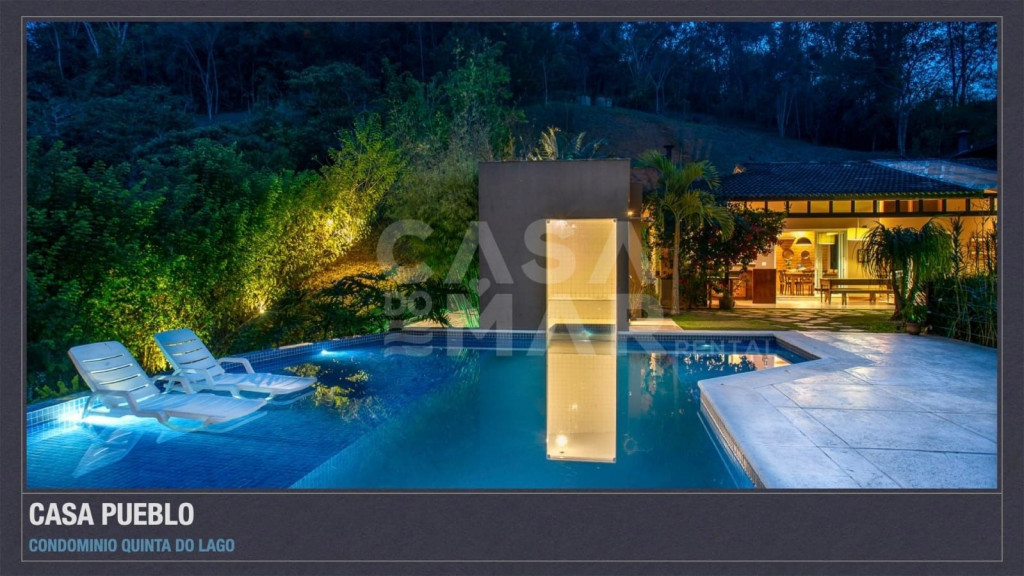 Casa maravilhosa na Quinta do Lago. 5 suítes, piscina, sauna, garagem, ar condicionado, lareira, forno de pizza, churrasqueira, cozinha super equipada, TV a cabo, 4 televisões, wi fi de fibra ótica, 2 geladeiras e um freezer horizontal. Fora a diária tem o consumo de agua e luz (medido pelos relógios) e a empregada que cobra R$ 190/dia e vale cada centavo porque limpa, cozinha, sabe tudo da casa além de ser super de confiança e alto astral.