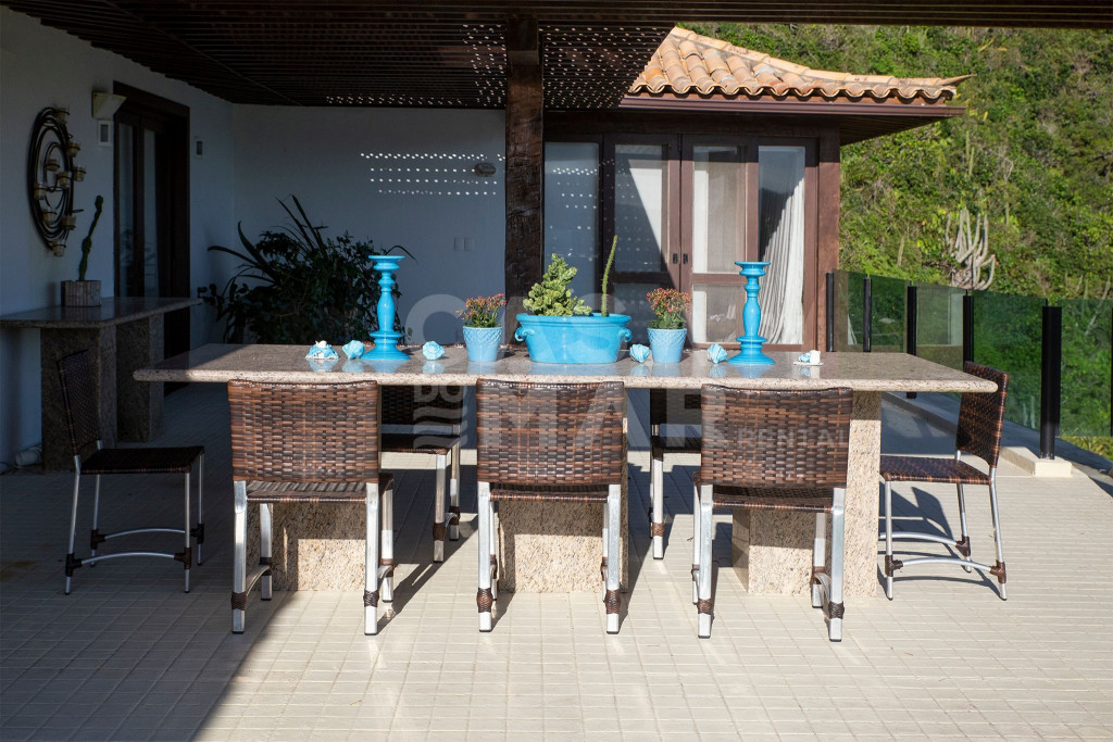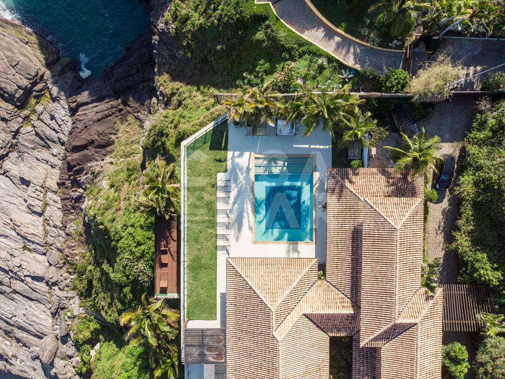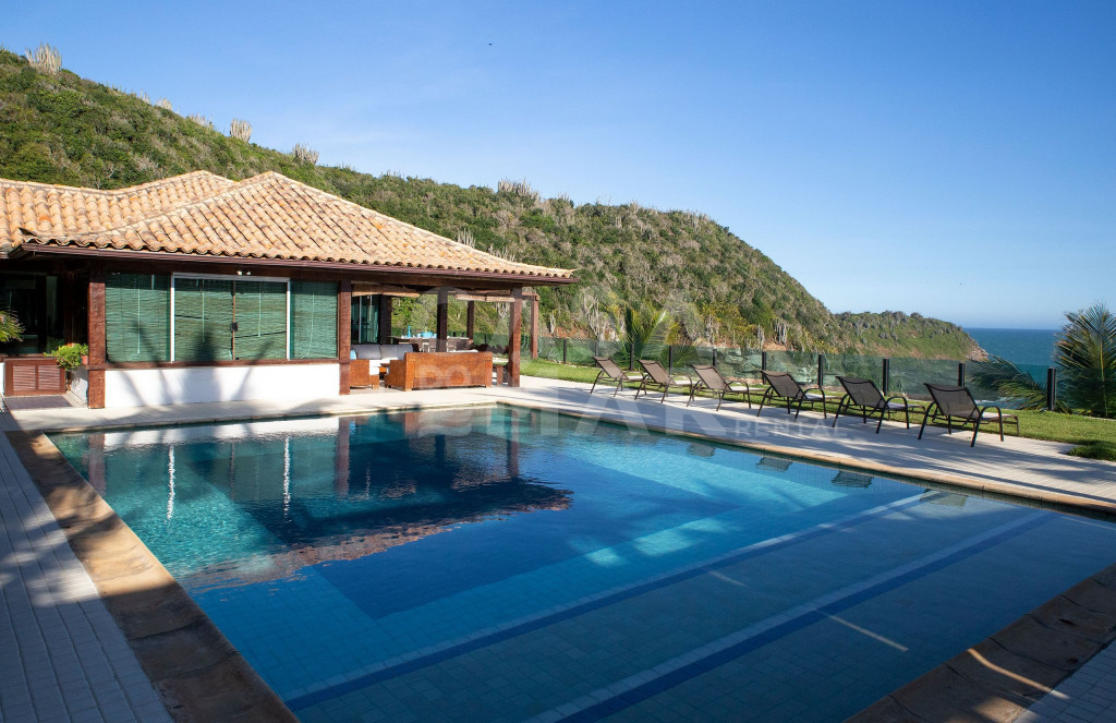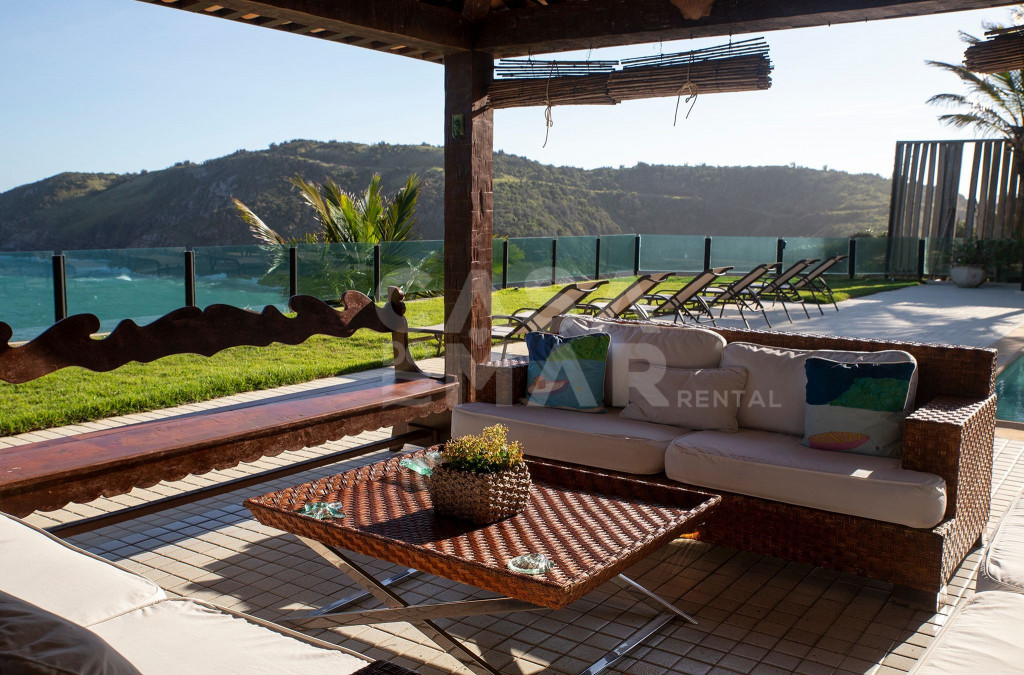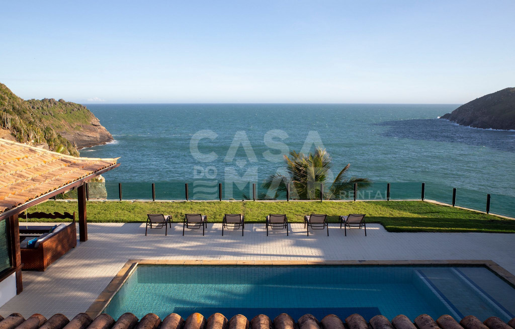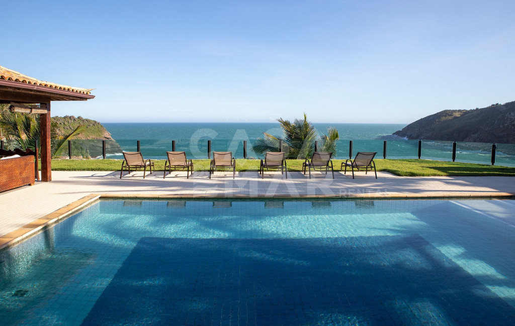 Ampla área externa, com piscina com vista panorâmica do mar, gazebo e talvez a melhor vista de Armação dos Búzios.