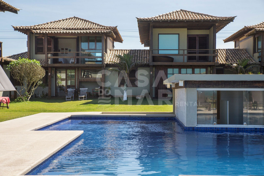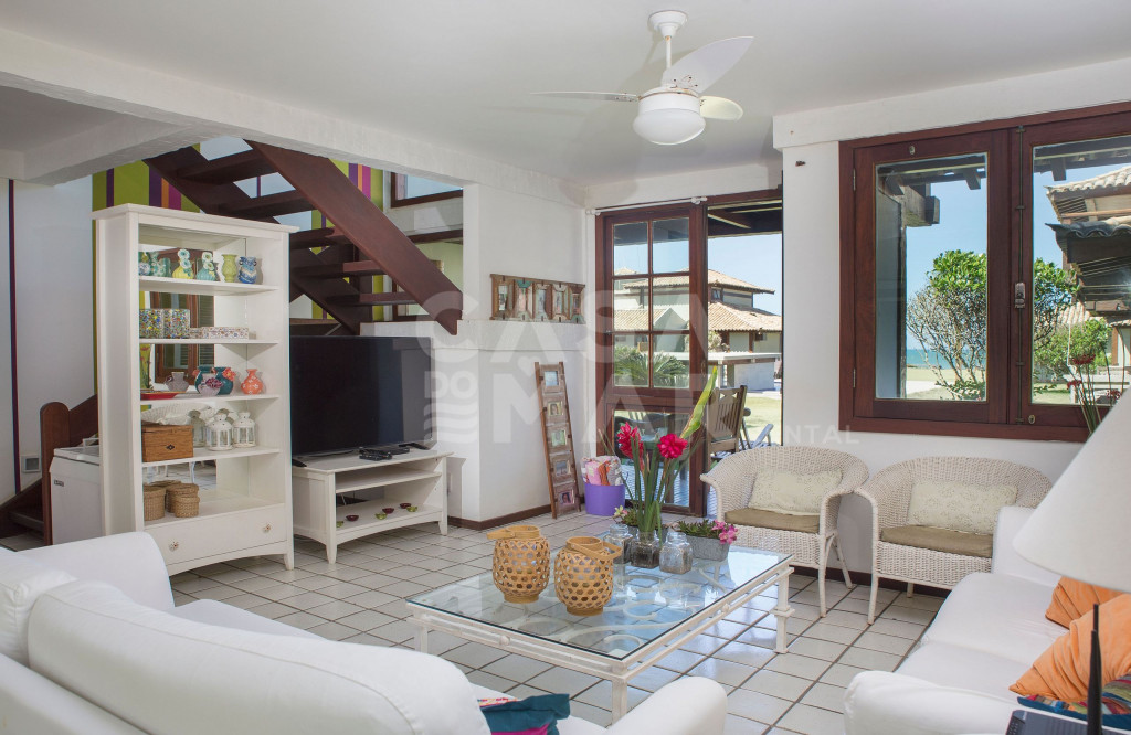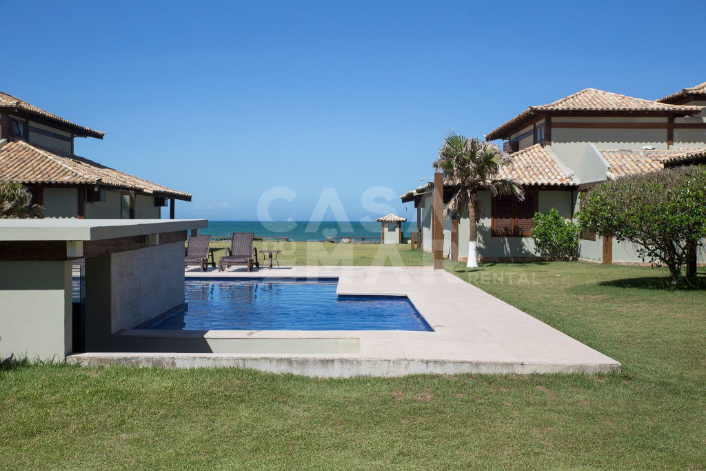 Linda casa com quatro quartos, em condomínio, de frente para a Praia Rasa
