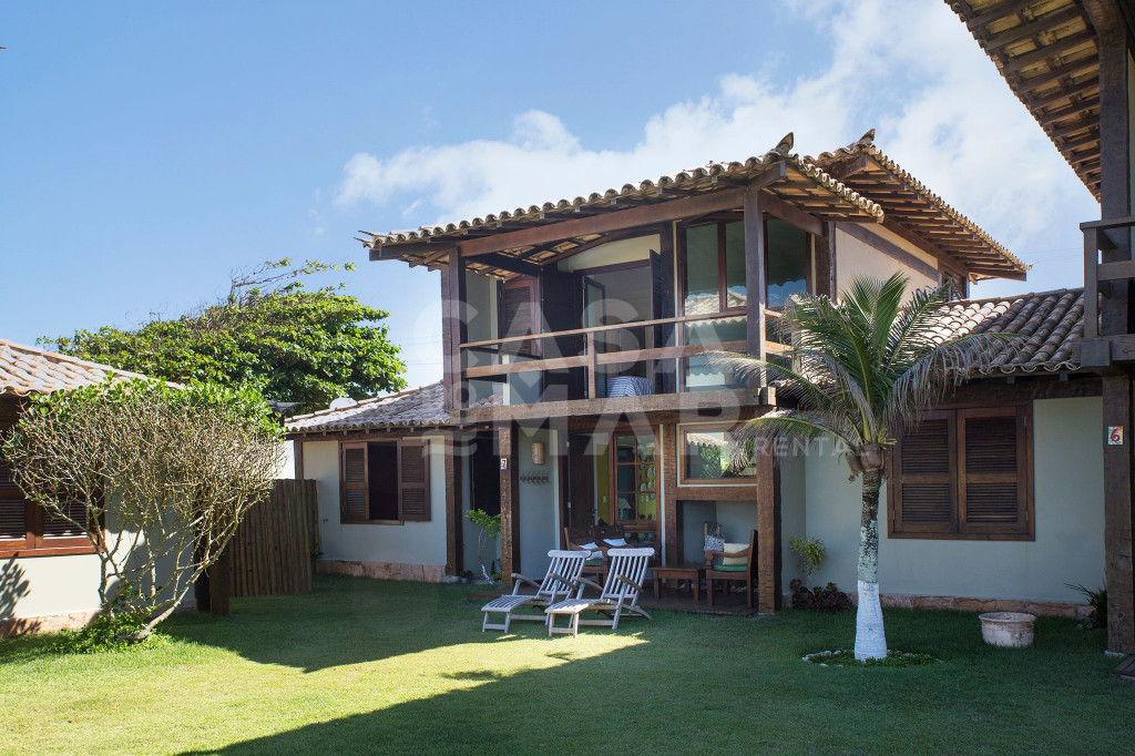 Linda casa com quatro suítes de frente para a Praia Rasa. A casa fica localizada em condomínio com poucas casas, tornando um ambiente calmo e tranquilo.Todos os quartos com ar condicionado, acomodando tranquilamente oito pessoas. Salas de jantar e sala de estar, cozinha e ótima varanda na suítes master, com vista para o mar.Caprichosamente decorada, essa casa recebe a brisa do mar, tornando os espaços arejados e frescos.Condomínio com piscina e sauna, e paisagismo completo.-Água e luz pago a parte.