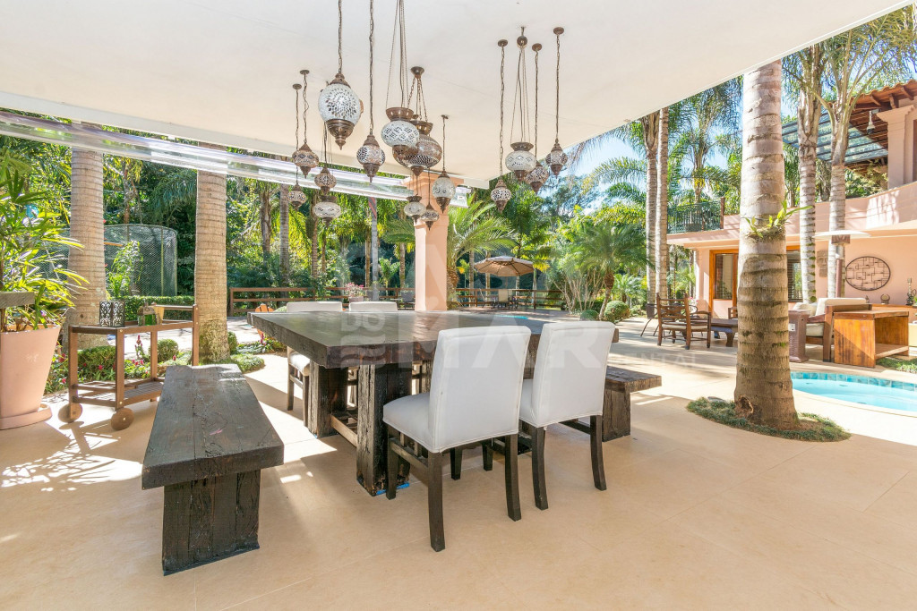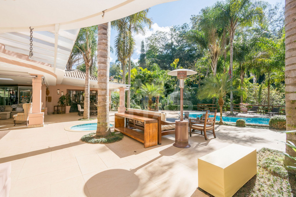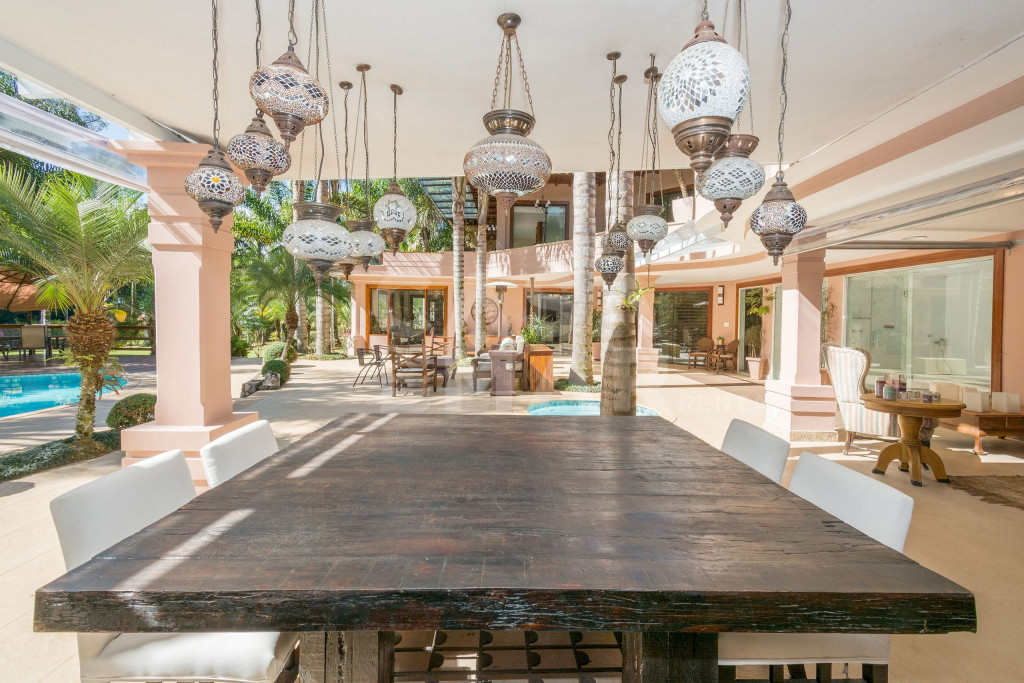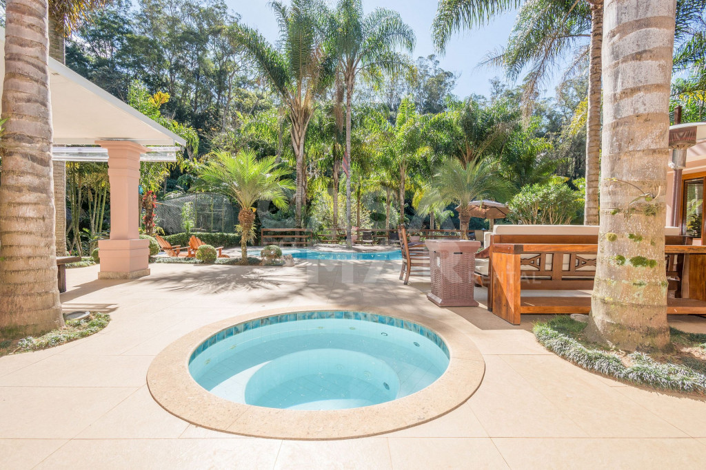 Dois espaços gourmet vinculados à área externa e cozinha. Churrasqueira e forno à lenha, além de TV big screen completam com requinte a área de lazer.quadra de areia, piscina, sauna e jacuzzi distribuídas pelo amplo terreno, que ainda oferece amplo jardim, com espaço para esporte, descanso e principalmente, muita paz.