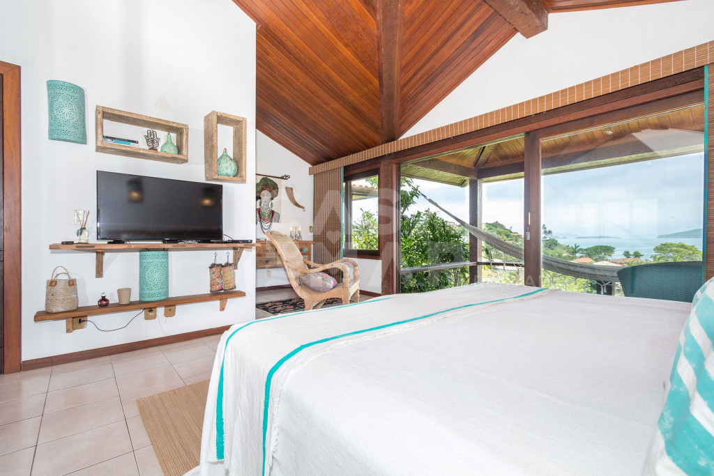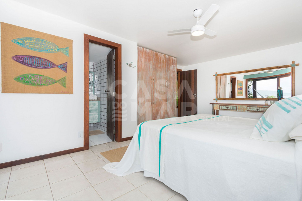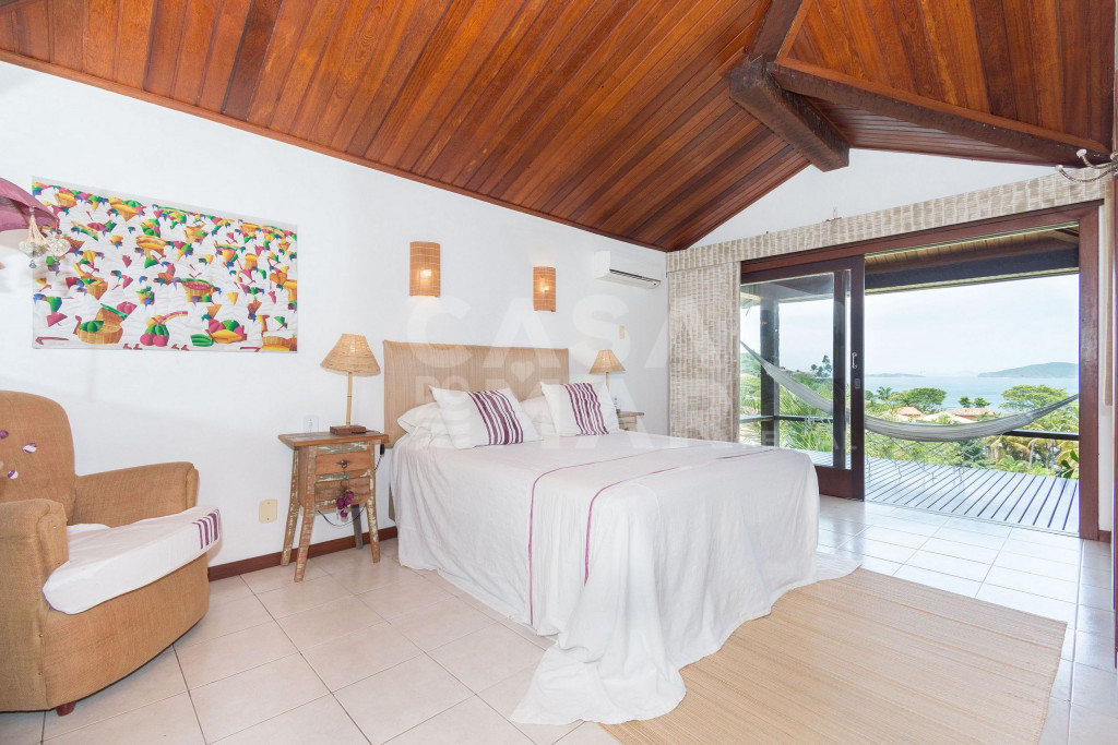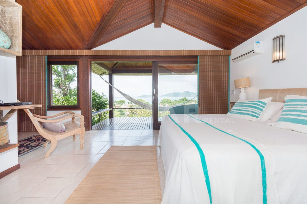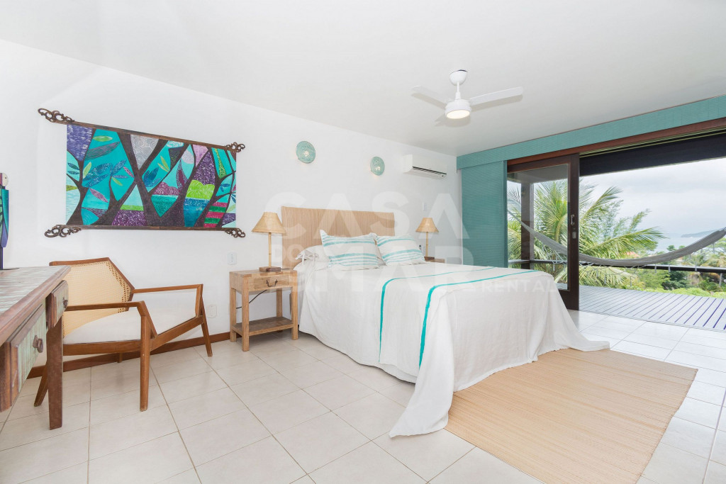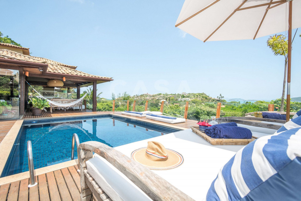 Linda casa com vista privilegiada para a Praia de Geribá, em condomínio privado com segurança 24h.Arquitetura moderna, decoração com requinte e praticidade.A casa é composta por sete amplas suítes, todas com ar condicionado, totalmente equipadas, uma grande sala de estar interligada a sala de jantar e sala de TV, cozinha completa.Área externa é deslumbrante, sincronizada com a natureza com todos os acessos aos cômodos, piscina privativa com deck, churrasqueira, mesa externa e sauna, completam essa linda casa.A 6 minutos do lado esquerdo da Praia de Geribá e 10 minutos da Praia da Ferradurinha. Apenas 10 minutos de carro para o centro de Búzios.