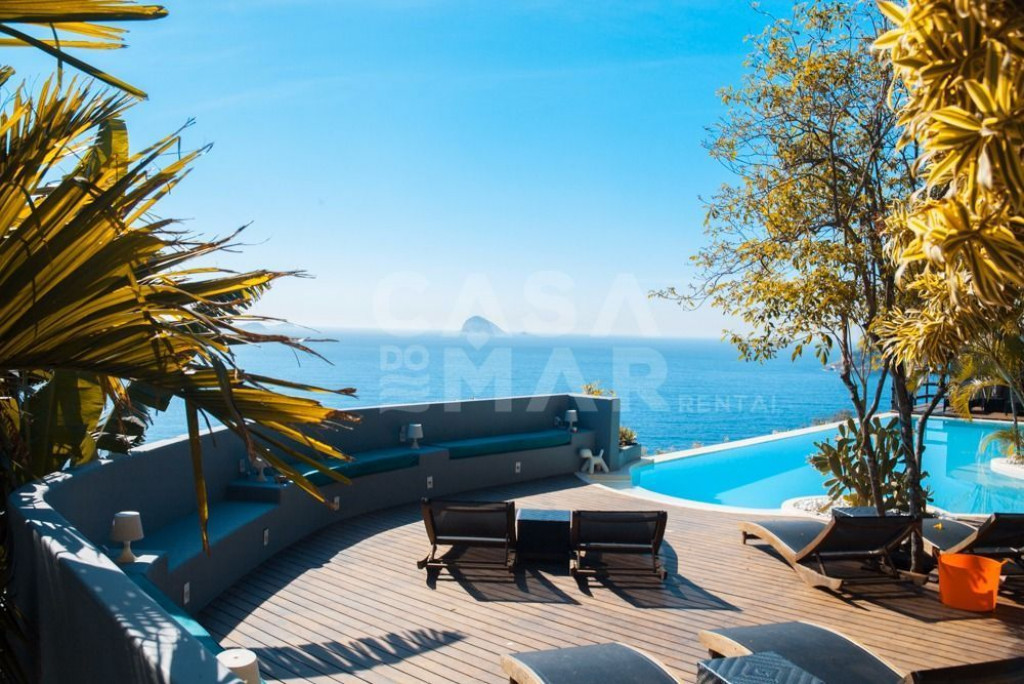 Linda casa com sete suítes, em localização privilegiada, com privacidade e conforto.Sete amplas suítes, todas com ar condicionado, camas king size, e vista para o mar.Ampla sala de estar, e varanda, onde podem ser servidos café da manhã e jantar.Piscina com serviço de atendimento de bar e petiscos.