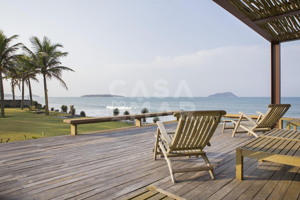 Casa espetacular com sete amplas suítes, de frente para o mar, pé na areia da Praia Rasa. Decorada pelo renomado arquiteto Miguel Pinto Guimarães, te faz viajar pela região da Polinésia, especificamente Bali. Totalmente equipada, a casa oferece sete amplas suítes com ar condicionado e vista para o mar ou para a natureza. Com três salas de estar, sala de tv e varanda acoplada com espaço gourmet que por sua vez conecta-se com a cozinha, faz desse lugar uma perfeita acomodação para a família e amigos. Escritório completo com internet de alta velocidade. A área externa oferece um gazebo construído de bambu com vista panorâmica do mar, próximos a lindos coqueiros remetendo a região Nordeste do país. Transforme o espaço da lateral da casa em uma quadra de vôlei ou campo de futebol de grama oficial, sauna a vapor com vista para o mar e um pula-pula para as crianças, completam a área externa. Não podemos esquecer da horta com várias opções de vegetais orgânicos, para usar nas suas refeições.-Água e luz pago a parte.