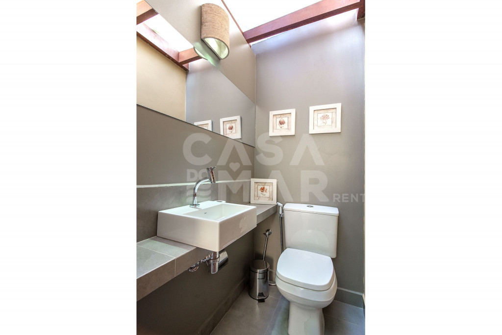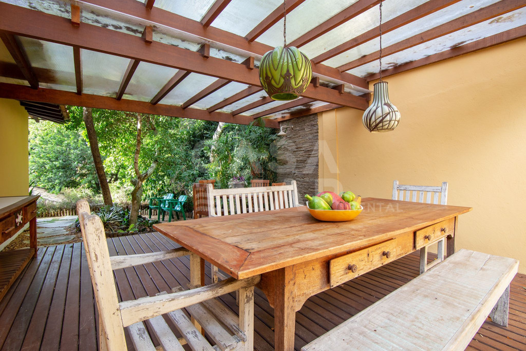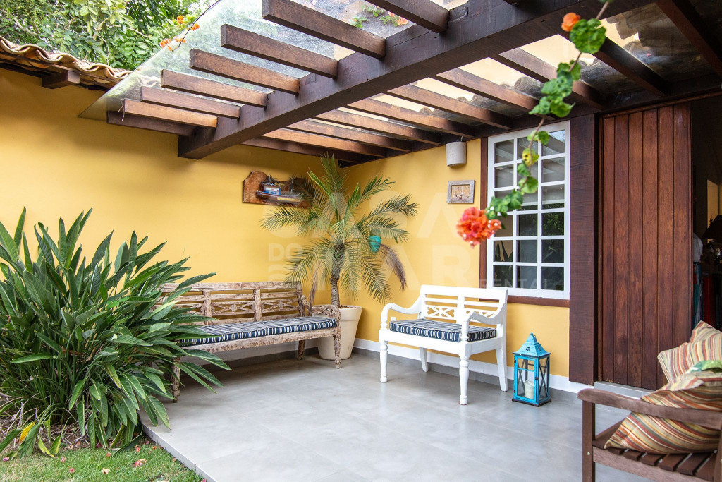Linda casa com duas suítes mais um quarto, localizada em condomínio a poucos metros da praia da Ferradura.Casa com infra estrutura completa, ar condicionado nos três quartos e na sala de estar, tv a cabo, internet wi-fi de alta velocidade, geladeira de cerveja, máquina nespresso. Cozinha completa com todos os utensílios necessários.Área externa com churrasqueira, mesa de madeira para 10 pessoas, chuveiro e muita natureza.Tudo isso a poucos minutos da Praia da Ferradura e da rua das pedras.-Água e luz pago a parte.