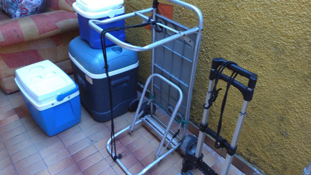 Carrinho pra levar cadeiras de praia e tbm vira mesa ????