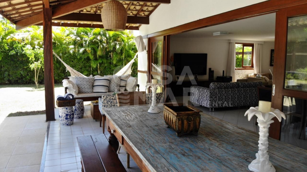Localizada no Condomínio Casas de Praia do Forte, essa linda casa com quatro suítes, localiza-se a 500 metros da Praia, com segurança 24 horas.A casa é composta por quatro suítes, todas com ar-condicionado e roupas de banho e cama de ótima qualidade, cozinha completa com todos os utensílios, sala de jantar e estar.Área externa com varanda, piscina com umbrelones e espreguiçadeiras, espaço decorado com poltronas para o chá da tarde.