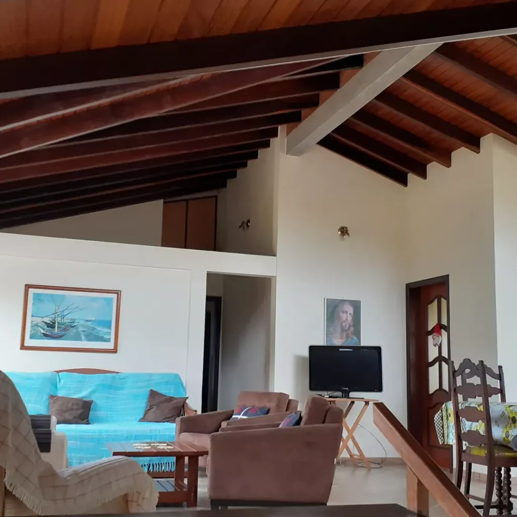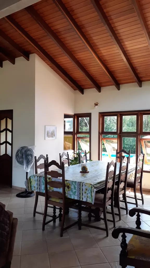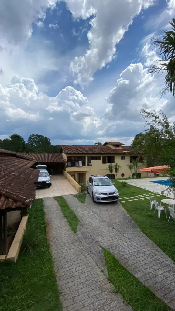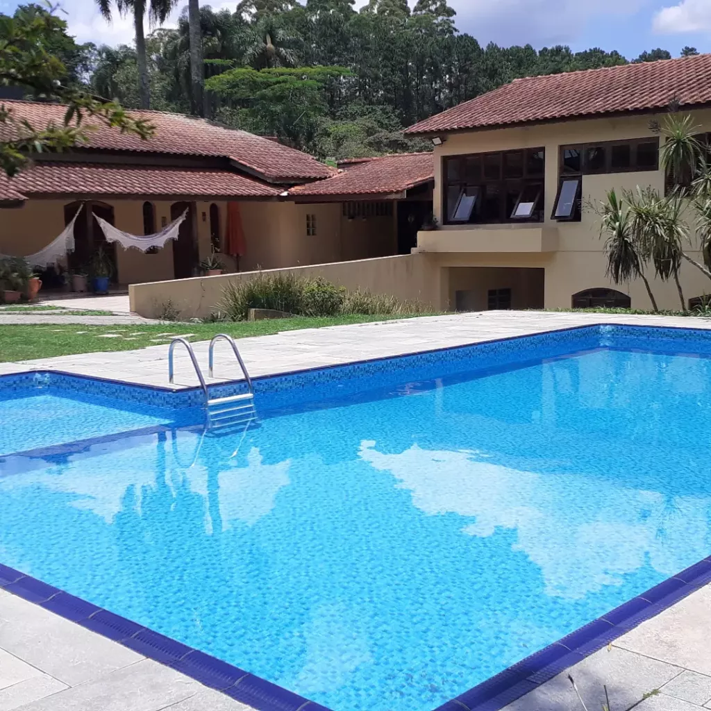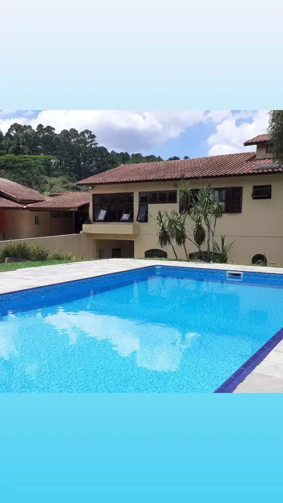 Linda casa de campo em Caucaia do Alto, à apenas 50 km do centro de São Paulo. Sem pedágio. Ideal para home office, tem cadeira de escritório e mesa. Wifi 250 mbps. Aceito pets de porte pequeno. Piscina 10m x 5m com escorregador e prainha para crianças. Banheira de hidromassagem. Lareira. Sala com teto de madeira abobadado. Hall de entrada. Copa. Churrasqueira. Forno de pizza. Varanda com redes de descanso. Cozinha completa. Freezer. Aparelho de fundae. Taças ds vinho. Banheira de hidromassagem. 4 banheiros completos, todos com barra de segurança no box. 1 lavabo. 5 quartos, sendo 2 suítes. Um berço. Mezanino com 2 camas de solteiro. Para até 16 pessoas, adultos e crianças. Para festas e comemorações, converse conosco. Venha morar alguns dias neste lugar privilegiado. O ar puro do campo e o canto dos passarinhos. A casa está localizada em rua de pequenos sítios, local familiar, não é condomínio. A casa tem muro na frente e nas laterais, atrás é um pequeno sítio. Supermercado, farmácia, posto de saúde, Igreja e comércio local à 4 km da casa.