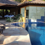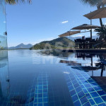 Piscina com borda infinita, com vista para o mar, e sauna úmida.