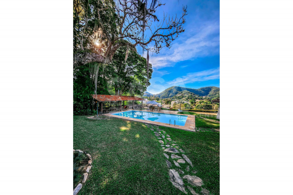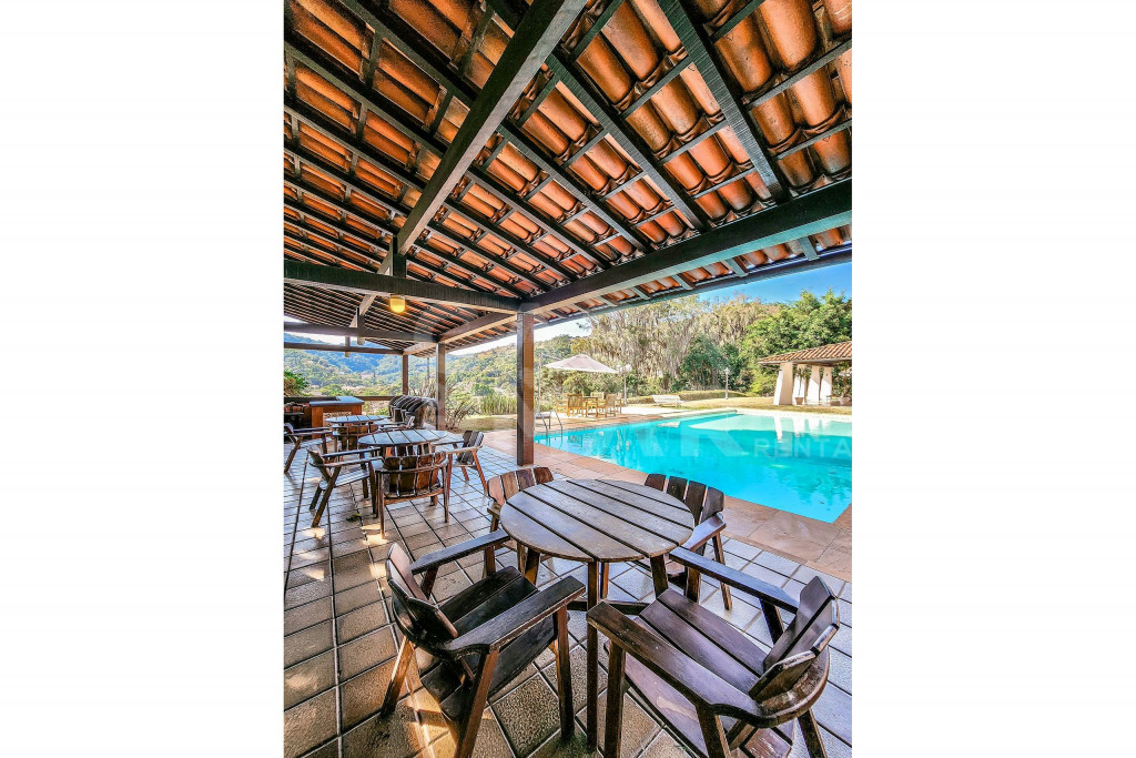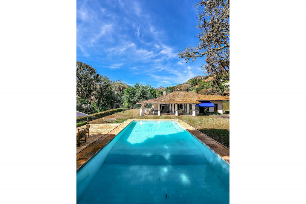 Casa ampla, arejada, com vista para as lindas montanhas da serra. Totalmente equipada, com roupas de cama, banho e de piscina, piscina grande, com sauna seca, e excelente espaço para churrasco.Propriedade muito bem cuidada, com três amplas de salas de estar, uma sala de jantar, tv a cabo e internet wi-fi.Acesso fácil, e serviço completo para os hóspedes.