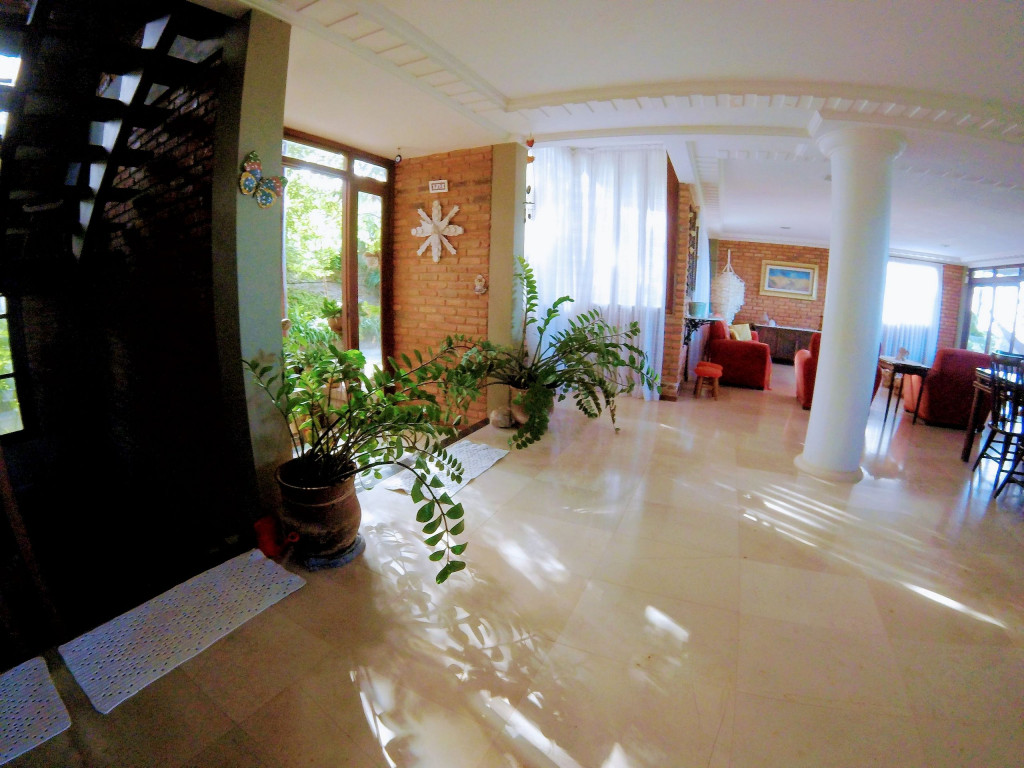 Linda casa vintage ao estilo serrano mas pertinho da praia, cercado por plantas e com uma vista de tirar o folego essa é a casa da Sú, completa com 3 suítes, sendo a suíte master com varanda privativa banheiro com hidromassagem e ar condicionado, as outras duas suítes possuem ar condicionado e varanda compartilhada com belíssima vista, sala no térreo com varandão e mesa de jantar para 8 pessoas, cozinha completa e toda a paz que você precisa para relaxar na serra e ter o mar pertinho.