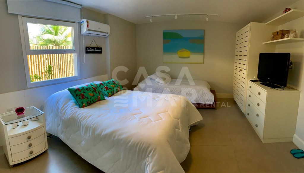 um belo portão de entrada para as outras praias que existem nesta região. A vegetação ao seu redor é litorânea e a praia é de mar oceânico. Nessa extensa praia estão localizados também o mercado de peixes com grande variedade de pescados e crustáceos frescos e o Porto da Barra com ótima infra-estrutura de bares, restaurantes e mercado, é só escolher o que for mais conveniente.A casa possui quatro suítes: