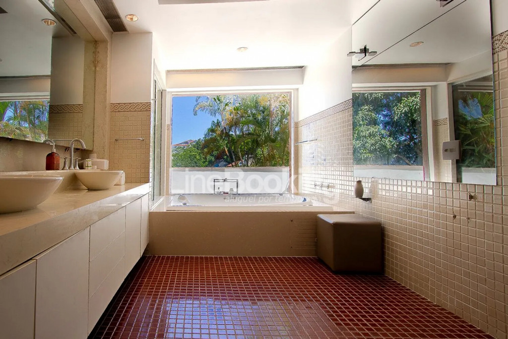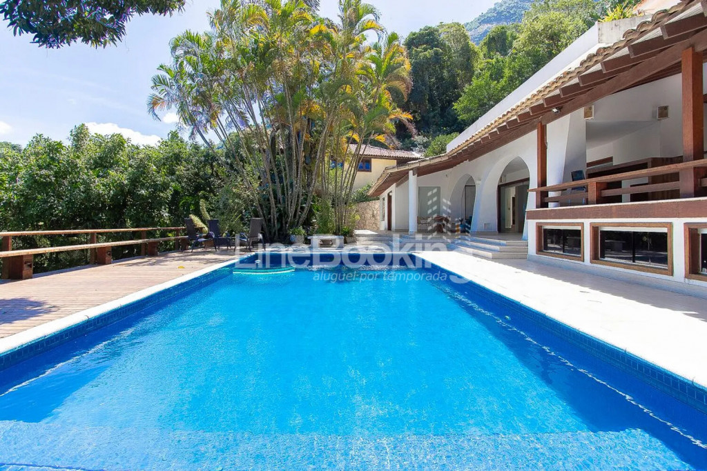 O condomínio tem segurança 24 horas com acesso controlado. A casa fica localizada à 450 metros do acesso à praia da Joatinga. Possui vaga coberta para 5 carros e uma agradável área em torno da piscina e jardim.
