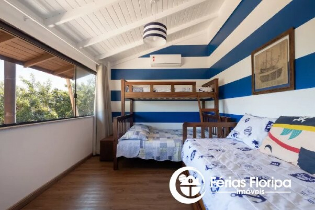 Possui dois pisos. Uma suíte, 2 quartos, lounge com rede, e um banheiro no andar superior (reformado recentemente), decoração clean, em piso vinílico, confortável para até 10 pessoas .