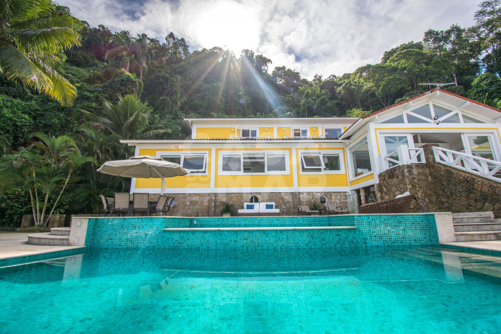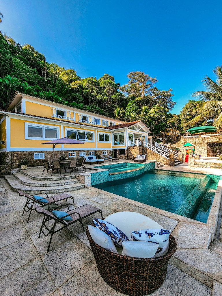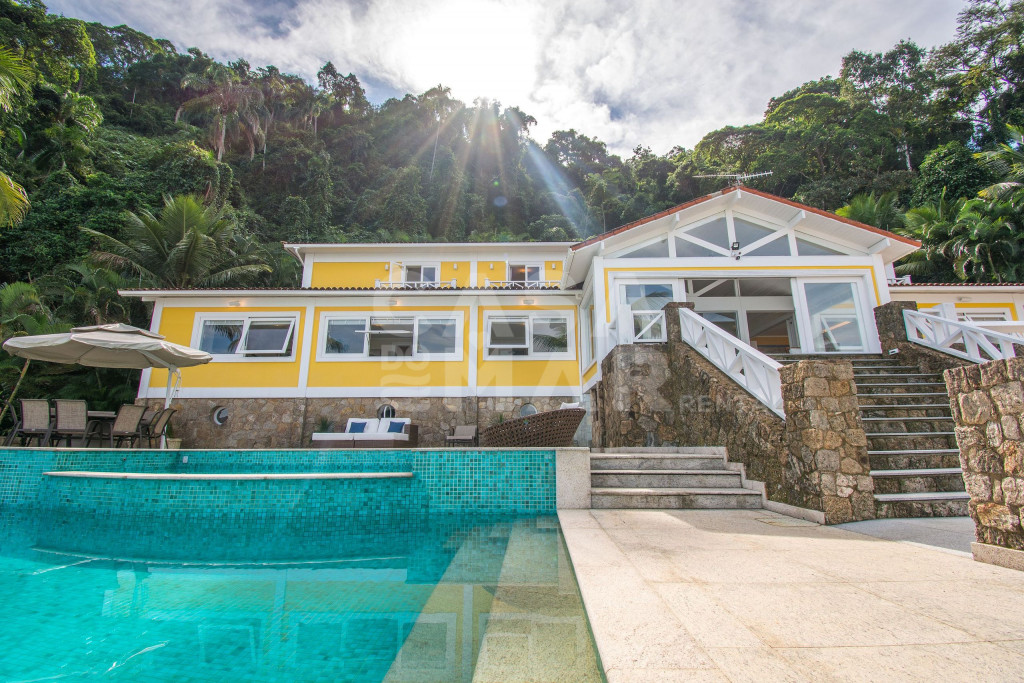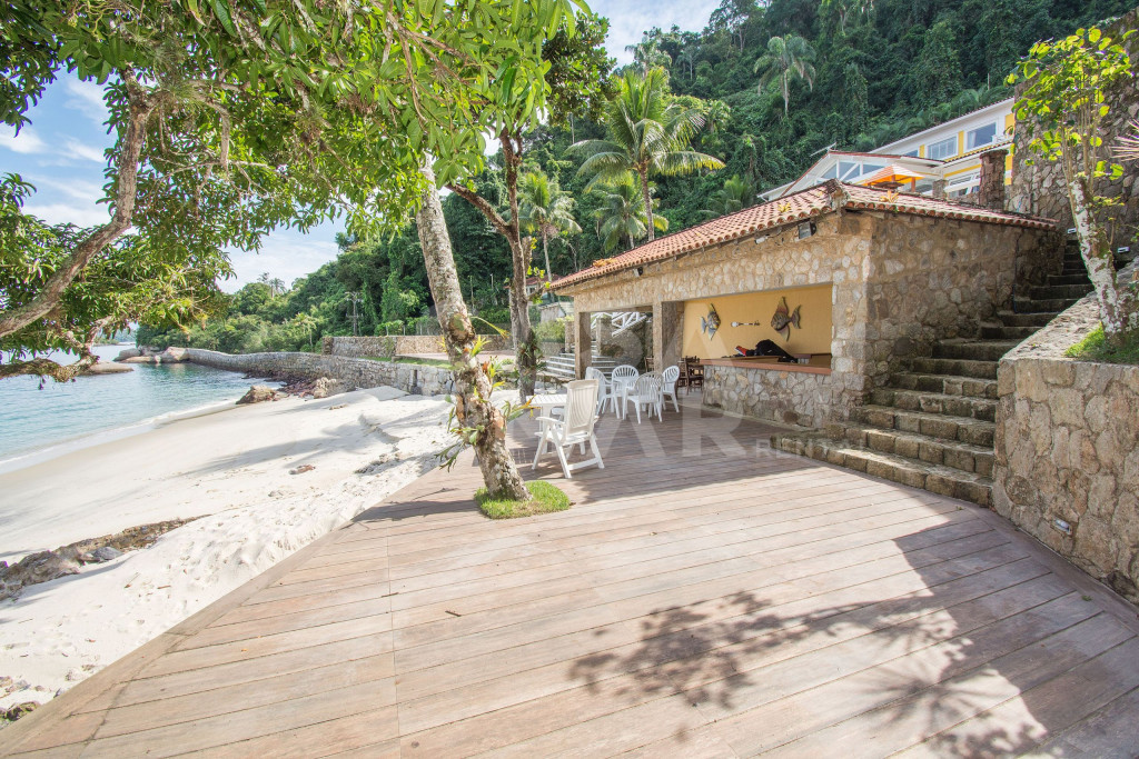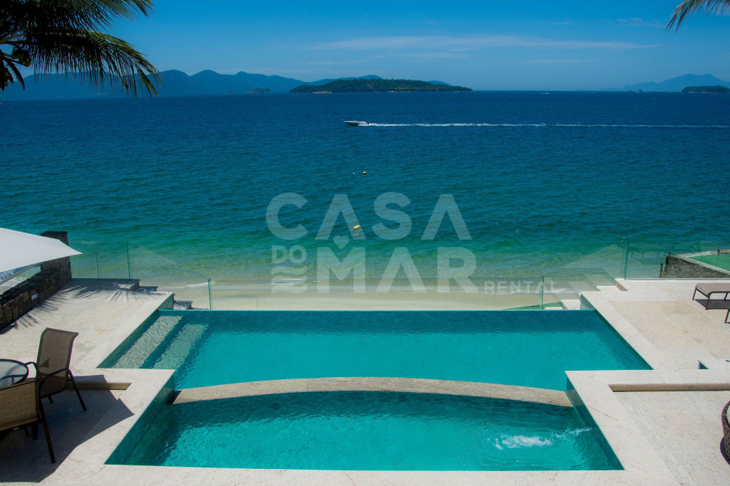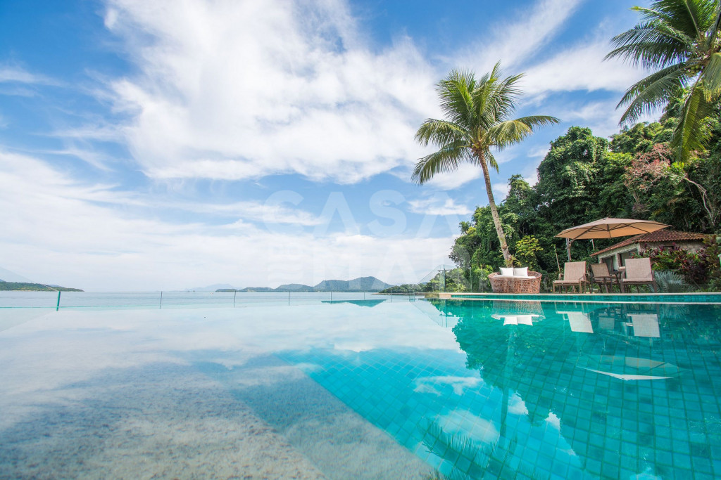 Linda mansão com praia privativa, heliponto em condomínio fechado, com segurança 24 horas.Nove amplas suítes, todas com ar condicionado com vistas para o mar. Três salas de estar, sala de TV e sala de jantar. Cozinha completíssima.Área externa com piscina de borda infinita, jacuzzi, de frente para o mar. Espaço gourmet com churrasqueira completa, forno de pizza a lenha, à apenas metros de sua praia particular.Espaçosa área com brinquedos para crianças. Sauna seca para 12 pessoas, e academia com ar condicionado.Última casa do condomínio, com exclusividade e privacidade completa.- Consumo de água e luz é pago a parte.