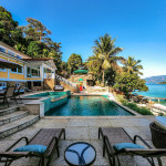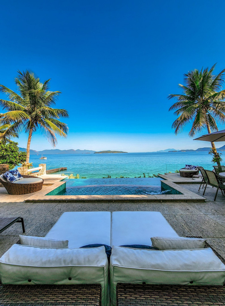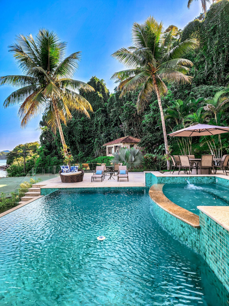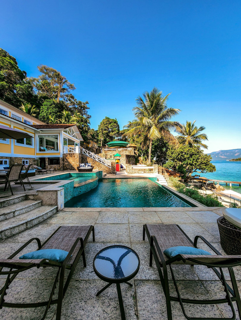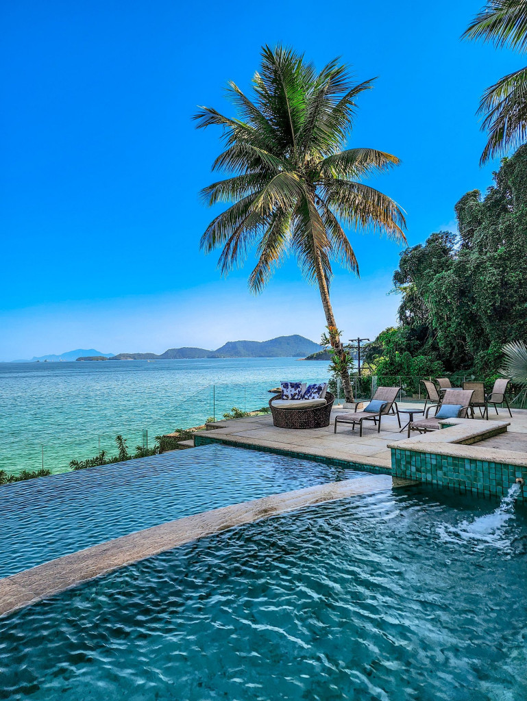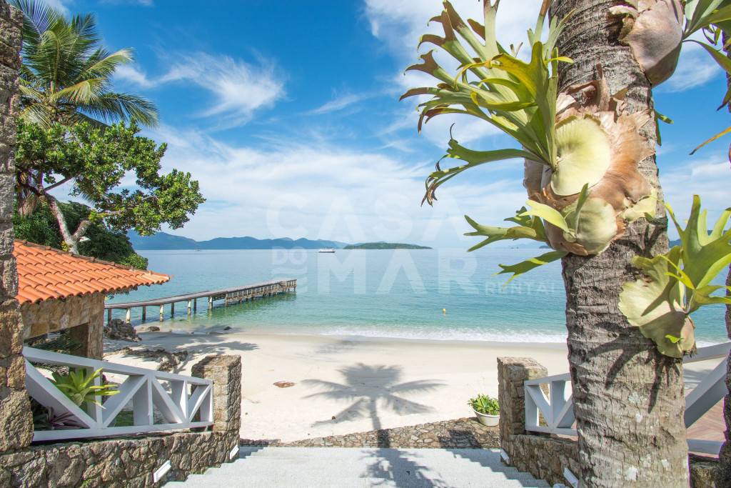 Linda mansão com praia privativa, heliponto em condomínio fechado, com segurança 24 horas.Nove amplas suítes, todas com ar condicionado com vistas para o mar. Três salas de estar, sala de TV e sala de jantar. Cozinha completíssima.Área externa com piscina de borda infinita, jacuzzi, de frente para o mar. Espaço gourmet com churrasqueira completa, forno de pizza a lenha, à apenas metros de sua praia particular.Espaçosa área com brinquedos para crianças. Sauna seca para 12 pessoas, e academia com ar condicionado.Última casa do condomínio, com exclusividade e privacidade completa.- Consumo de água e luz é pago a parte.