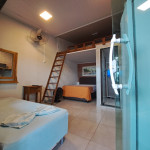 Cada suíte cabem no mínimo 5 pessoas, sendo uma cama de casal e colchões individuais num mezanino, recebendo assim uma família pequena com conforto numa súite.