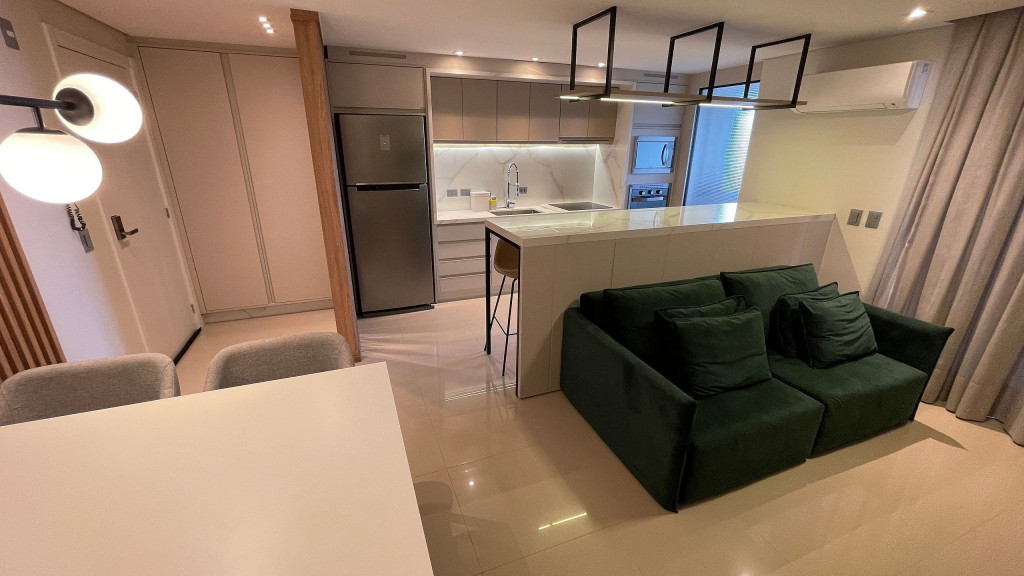 O espaço dispõe de vaga de garagem coberta no prédio, wi-fi, sofá cama de casal, quarto com cama de casal queen, armários, banheiro com chuveiro elétrico, cozinha equipada, adega, fechadura eletrônica com senha para acesso ao apt. Estou sempre a disposição para tirar dúvidas, passar informações, te ajudar em sua programação ou solucionar problemas que possam surgir de última hora, tanto com o apto quanto com a viagem do hóspede como um todo. Essa região do centro de Foz é simplesmente incrível! O prédio fica em uma rua paralela à avenida principal, Jorge Schimmelpfeng, o que torna o acesso aos bares e restaurantes fácil ao mesmo tempo que confere tranquilidade à rua do prédio. Os melhores bares e restaurantes da cidade estão a poucos minutos, além de farmácias e um mercado também próximo. Além de tudo isso, tem uma padaria bem ao lado do prédio! Há uma quadra da Avenida Jorge Schimmelpfeng, onde passa ônibus para todos os pontos turísticos e terminal. Próximo a ponto de taxi. A cidade dispõe de diversos aplicativos de transporte.