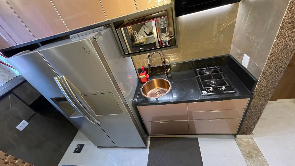 cozinha com divisória e privativo. O apto. é muito bem equipado e