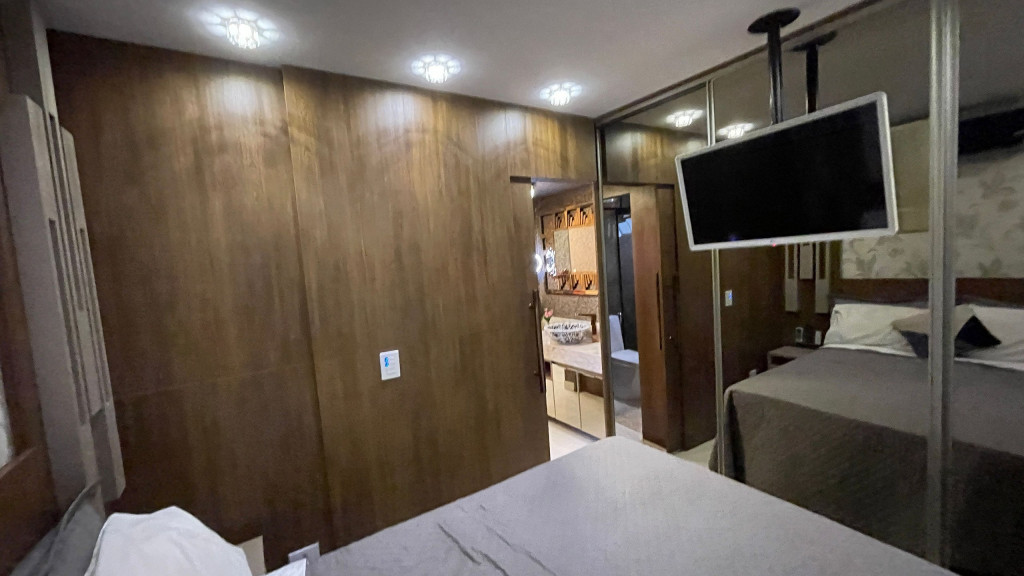 Possui cama de casal, cozinha, 2 AC, TV quarto e sala, adega, área de bar, WI-FI. Portaria 24