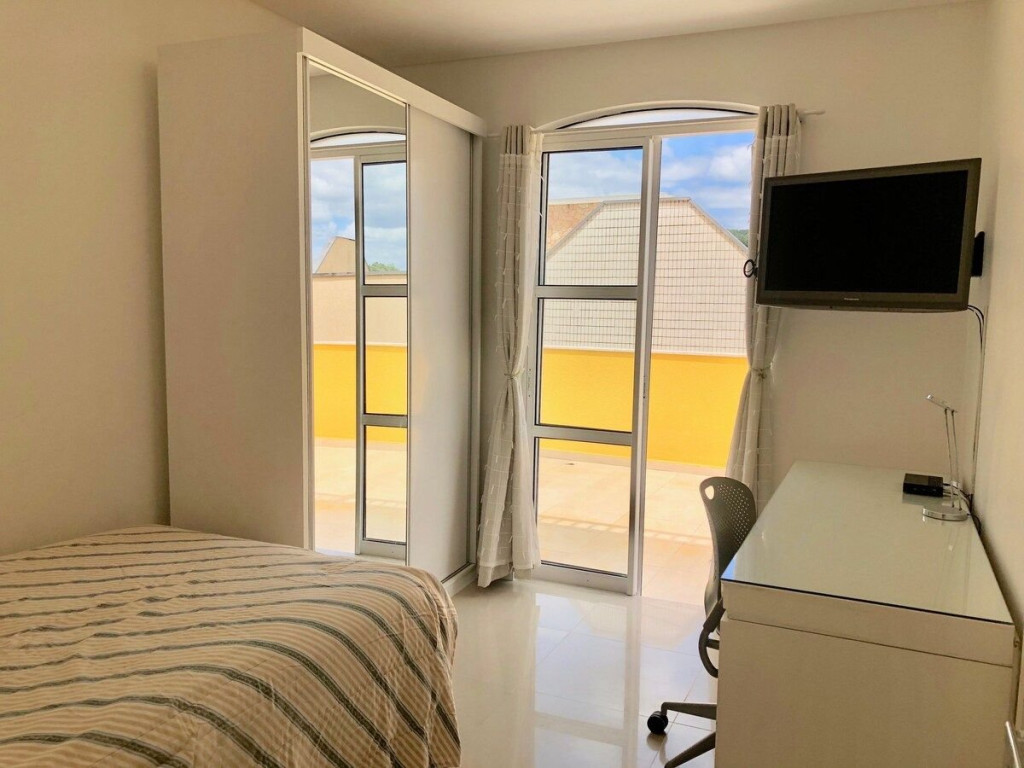 O apartamento 101 do Residencial Quinta do Sol acomoda até 8 pessoas (capacidade máxima incluindo crianças de qualquer idade) em 03 suítes com cama de casal. O imóvel disponibiliza para os hóspedes 02 colchões de solteiro e ar condicionado em todos os ambientes. O imóvel possui cozinha completa e equipada (Solicite inventário completo do imóvel), área de serviço, sala de estar e jantar, banheiro social, sacada com churrasqueira e linda vista para a praia de Porto Belo.