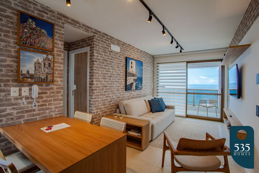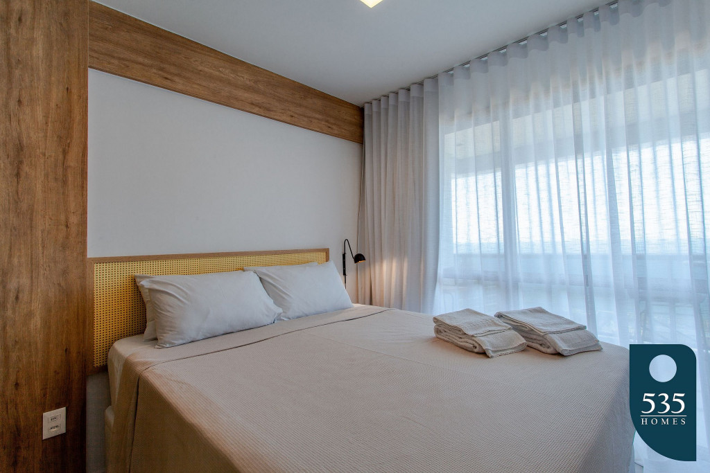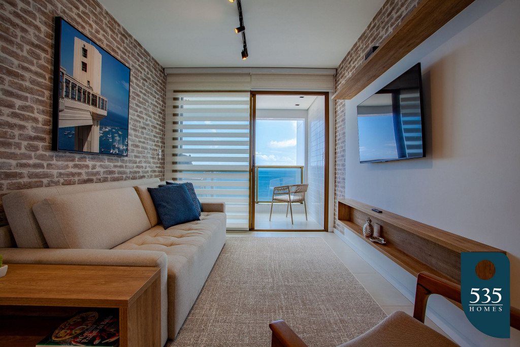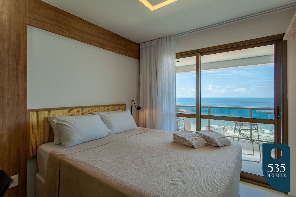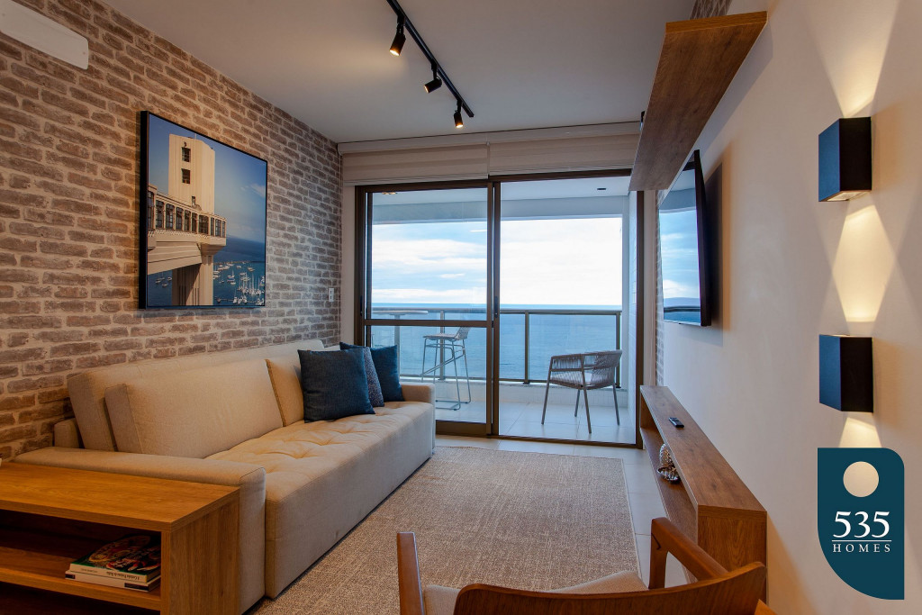 Apartamento incrível, novo com vista para o mar de 50 m² super decorado com sofá cama muito confortável para assistir televisão ou dormir 2 pessoas, quarto com cama Queen com estação de trabalho e ar condicionado Split. Área externa espetacular para tomar aquele café e apreciar a vista para o mar do 9° andar do prédio. Nossa cozinha é espaçosa e equipada com todos os utensílios necessários.
