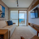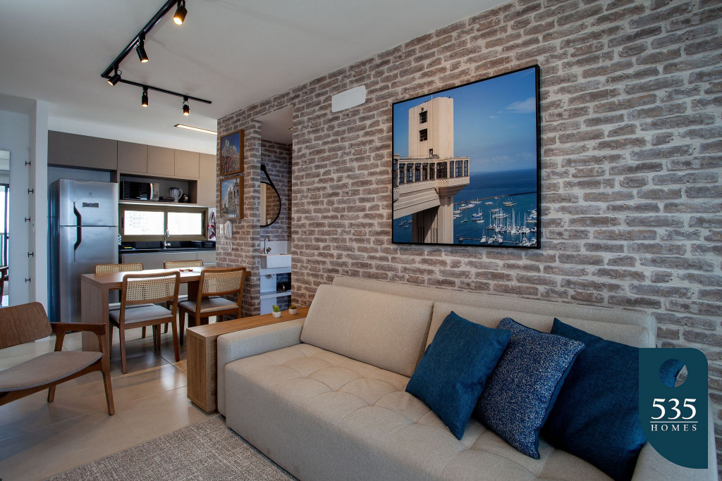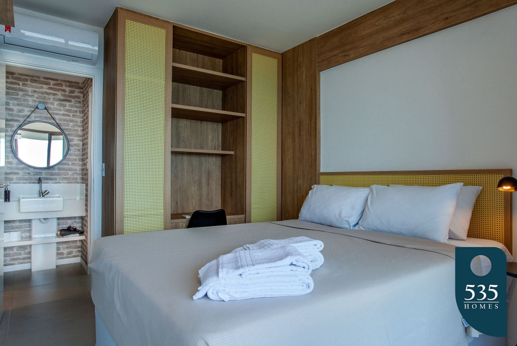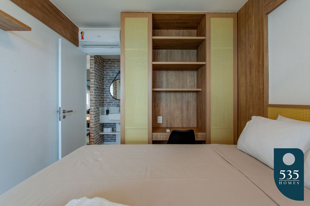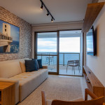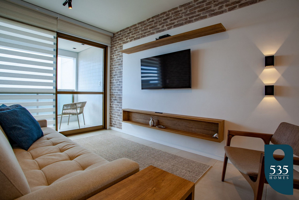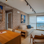 Apartamento incrível, novo com vista para o mar de 50 m² super decorado com sofá cama muito confortável para assistir televisão ou dormir 2 pessoas, quarto com cama Queen com estação de trabalho e ar condicionado Split. Área externa espetacular para tomar aquele café e apreciar a vista para o mar do 9° andar do prédio. Nossa cozinha é espaçosa e equipada com todos os utensílios necessários.