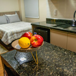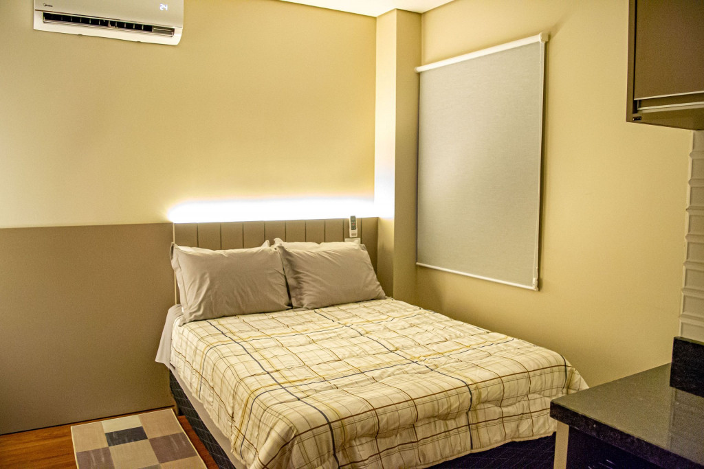 Seus apartamentos contam com cozinha equipada, Smart tv, cama confortável, ar-condicionado que refrigeram todo o espaço, central de trabalho/estudos, enxoval de cama e banho.