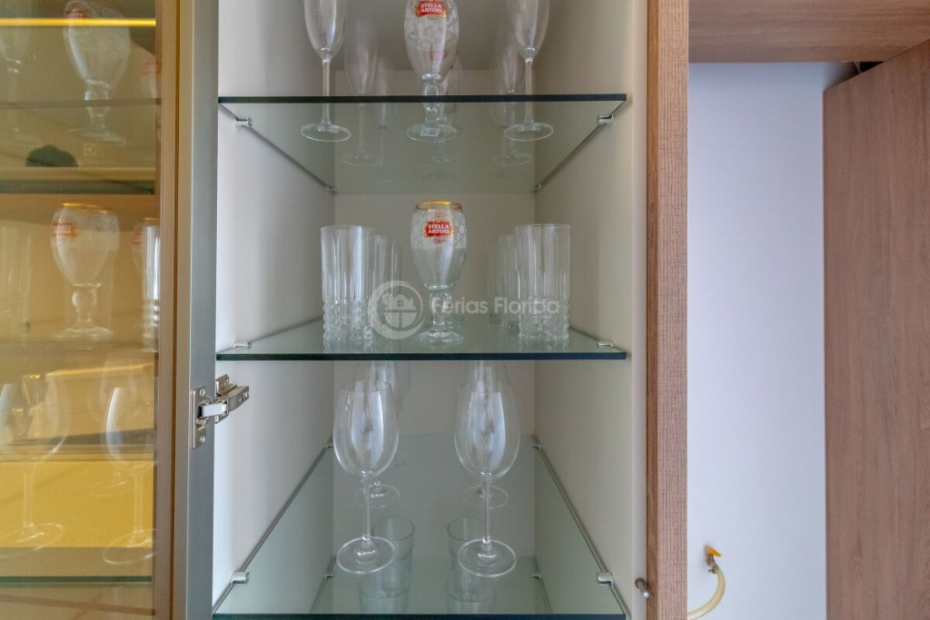 - Utensílios básicos de cozinha: Fogão ; Geladeira; Forno; Micro-ondas; Liquidificador; Cafeteira; Jogo de Panelas; Louças;