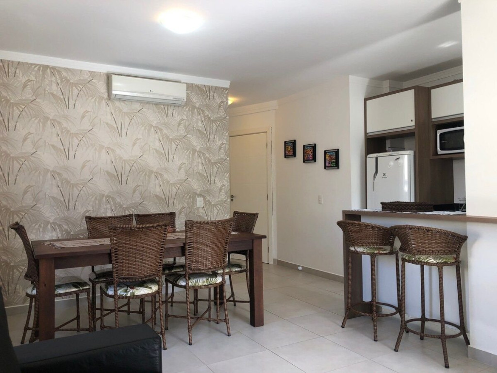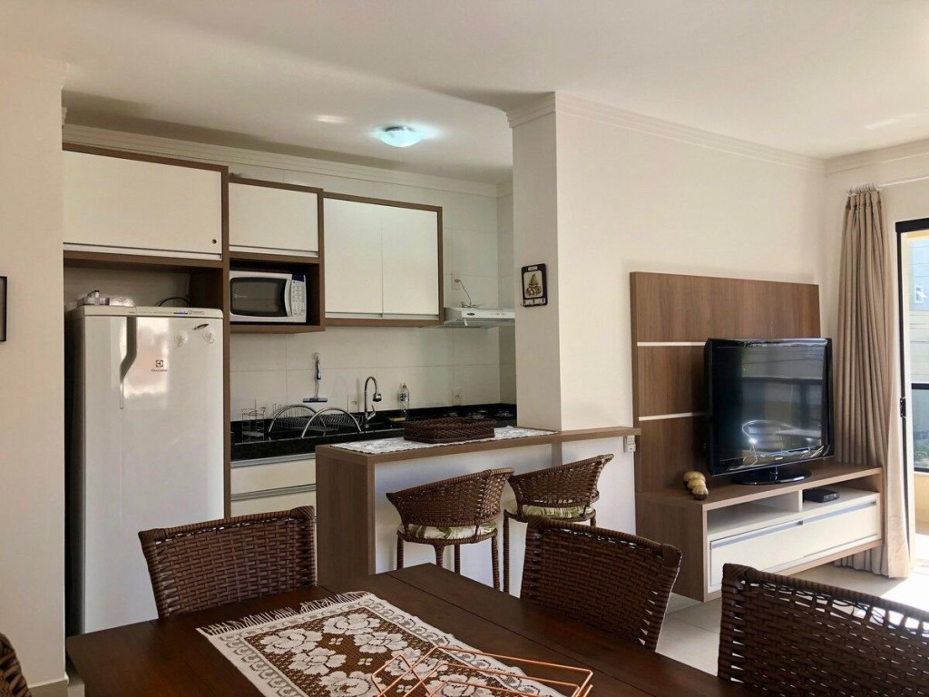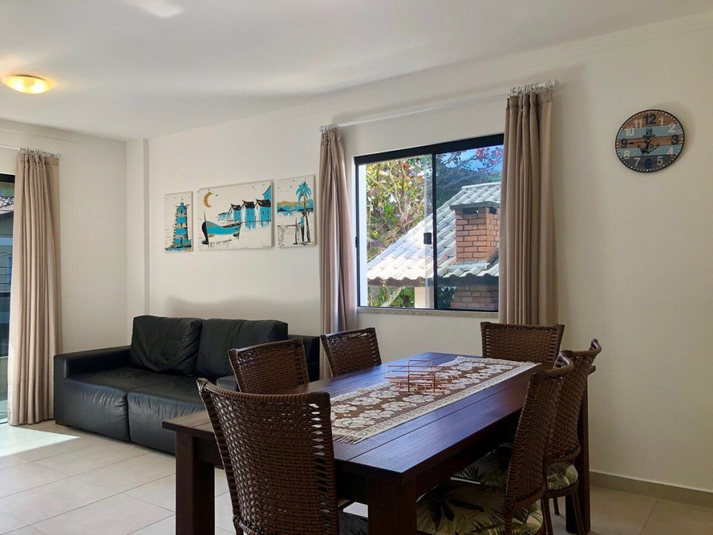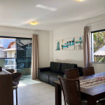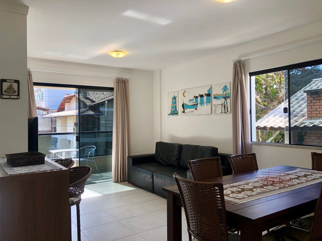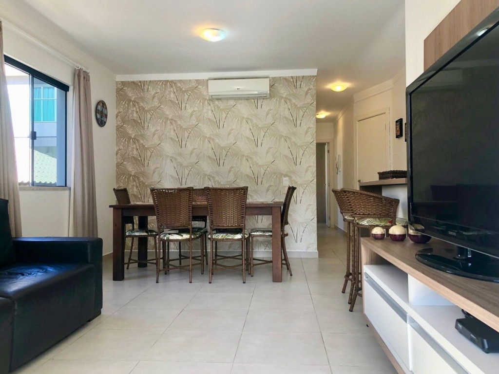 Apartamento de frente com 02 dormitórios, a menos de 3 minutos da praia de Bombinhas . 01 Suíte com cama de casal e ar condicionado; 01 Dormitório com duas camas box de solteiro com ar condicionado; 01 Banheiro social; Vaga dupla de Garagem, Sala com TV com ar condicionado; Cozinha equipada com todos utensílios; Sacada ampla com churrasqueira; Área de serviço com máquina de lavar roupa.