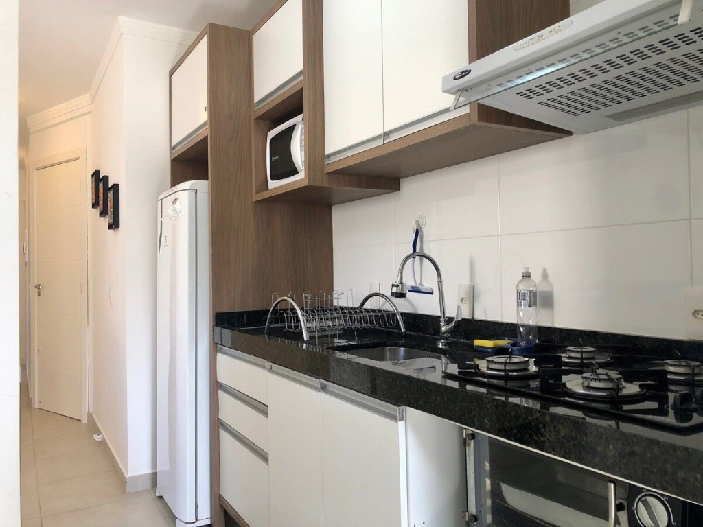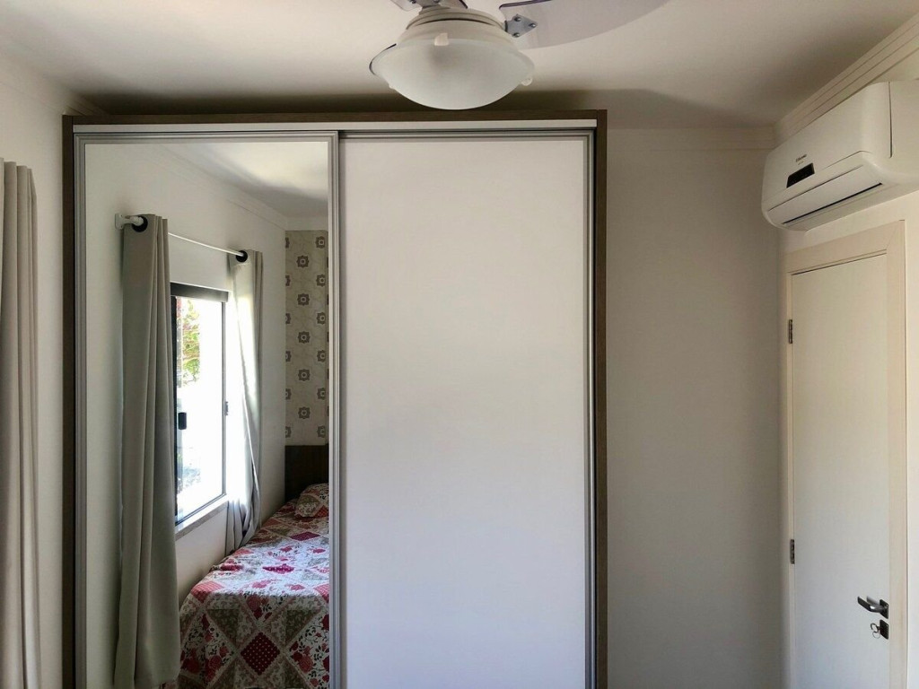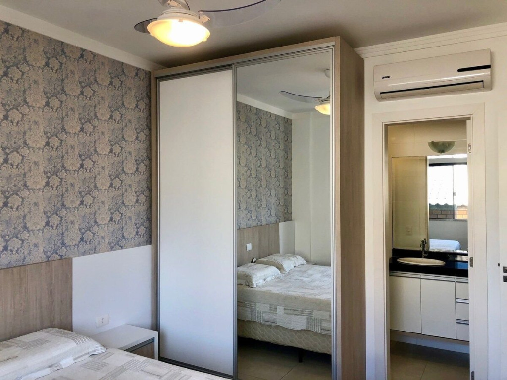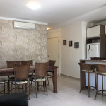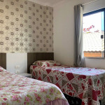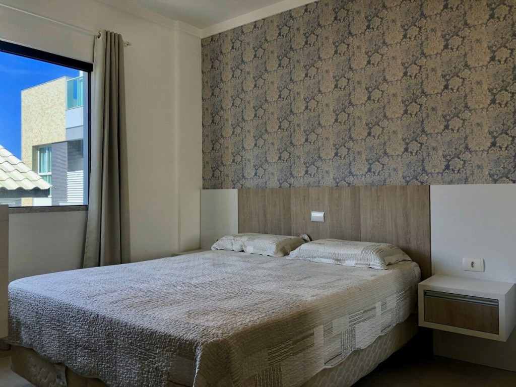 Apartamento de frente com 02 dormitórios, a menos de 3 minutos da praia de Bombinhas . 01 Suíte com cama de casal e ar condicionado; 01 Dormitório com duas camas box de solteiro com ar condicionado; 01 Banheiro social; Vaga dupla de Garagem, Sala com TV com ar condicionado; Cozinha equipada com todos utensílios; Sacada ampla com churrasqueira; Área de serviço com máquina de lavar roupa.