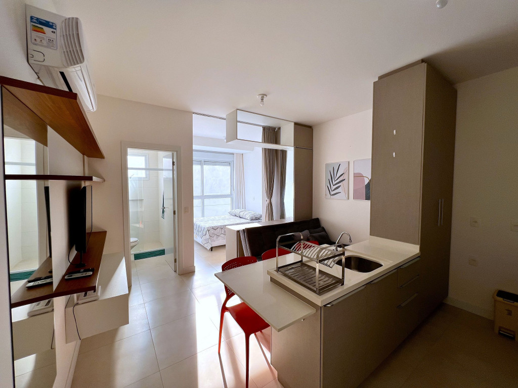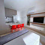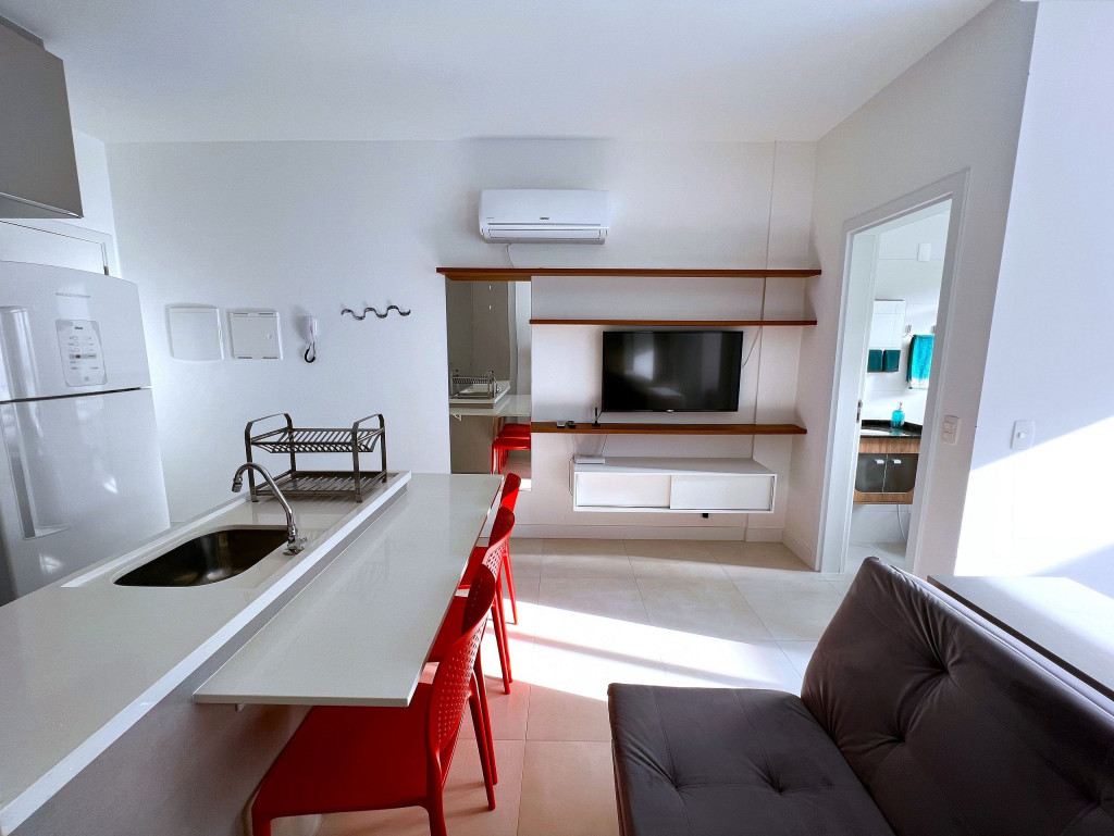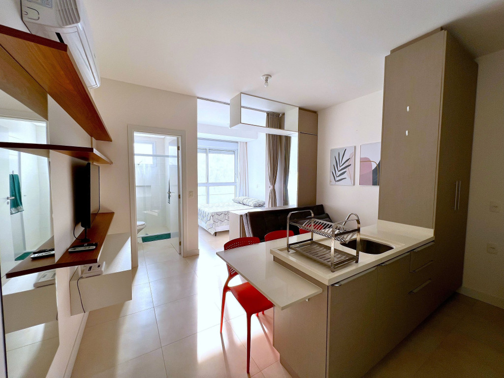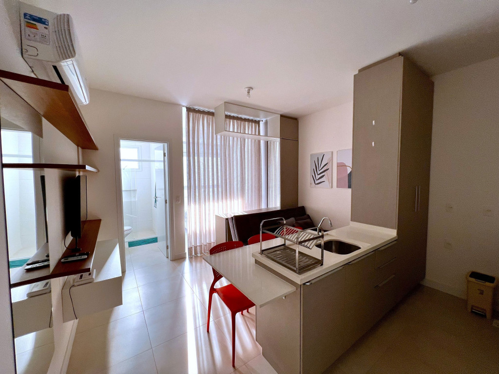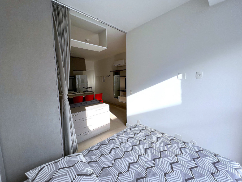 Este estúdio ficou pronto em 2019, tudo muito novo e moderno. Nossa acomodação tem cerca de 40 m². Possui ar condicionado e persiana com blackout para ter uma excelente experiência ao dormir. A cozinha é completa, com os itens necessários para cozinha. Temos uma internet de 1.000 mega super rápida.