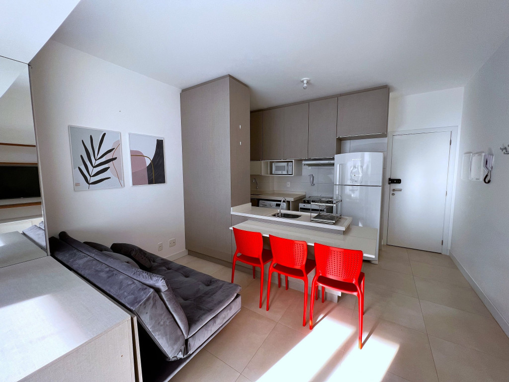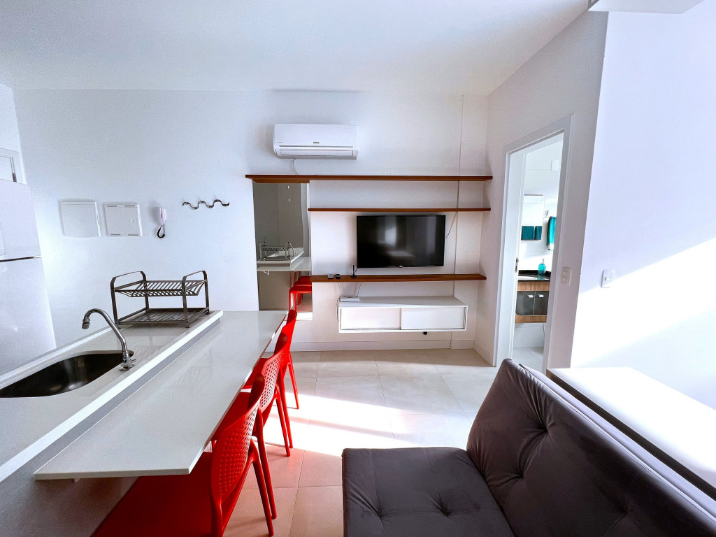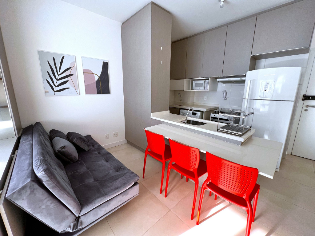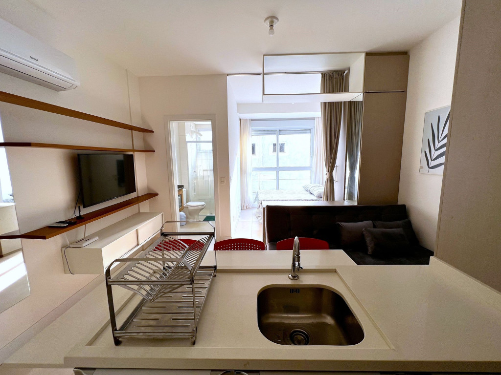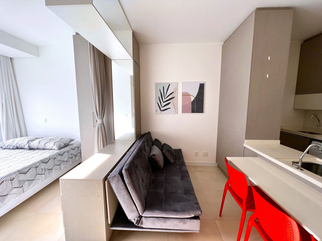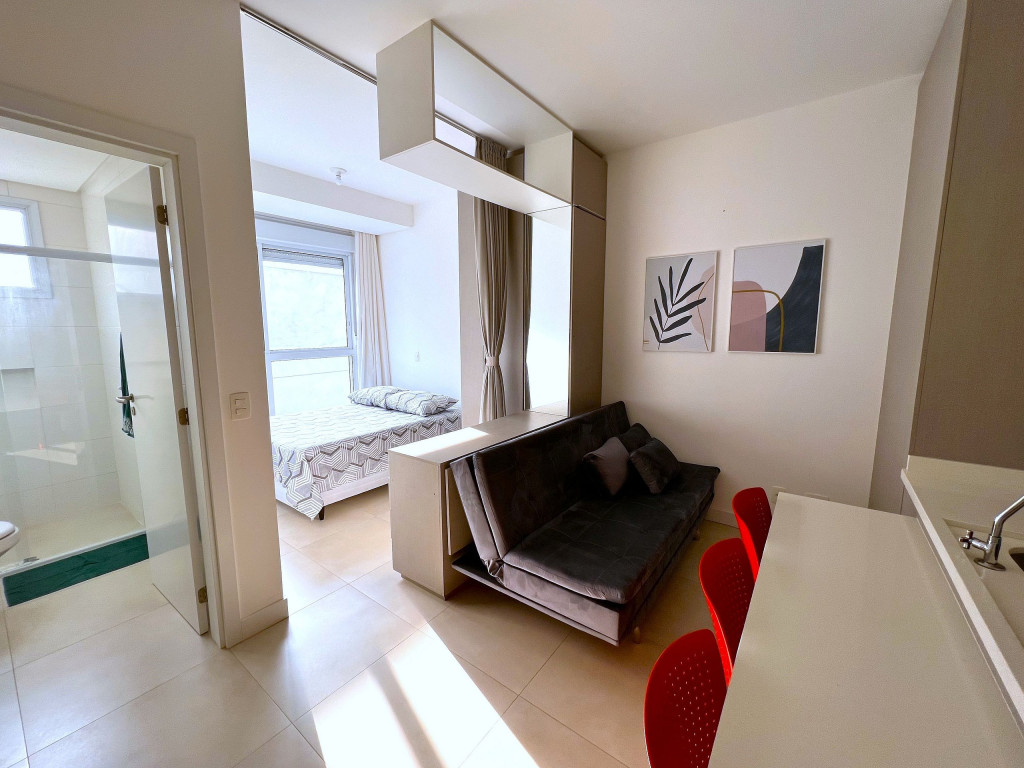 Este estúdio ficou pronto em 2019, tudo muito novo e moderno. Nossa acomodação tem cerca de 40 m². Possui ar condicionado e persiana com blackout para ter uma excelente experiência ao dormir. A cozinha é completa, com os itens necessários para cozinha. Temos uma internet de 1.000 mega super rápida.
