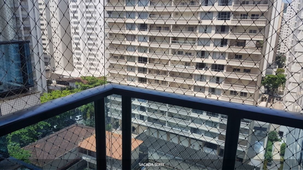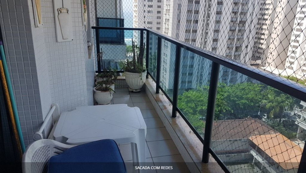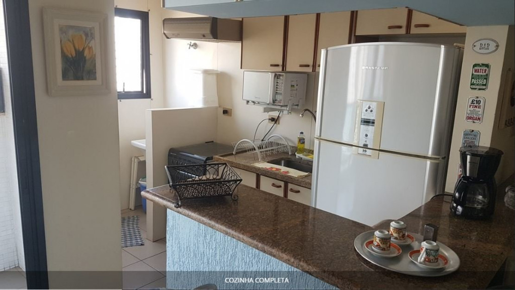 COZINHA EQUIPADA , SALA COM AMPLA SACADA , VISTA AO MAR E TELAS DE PROTEÇÃO.