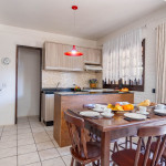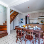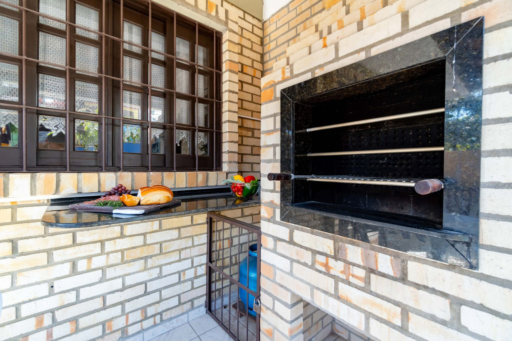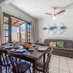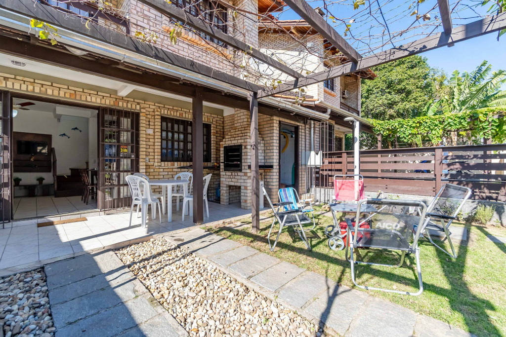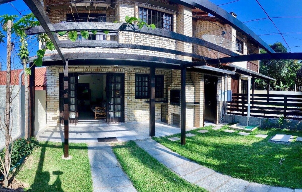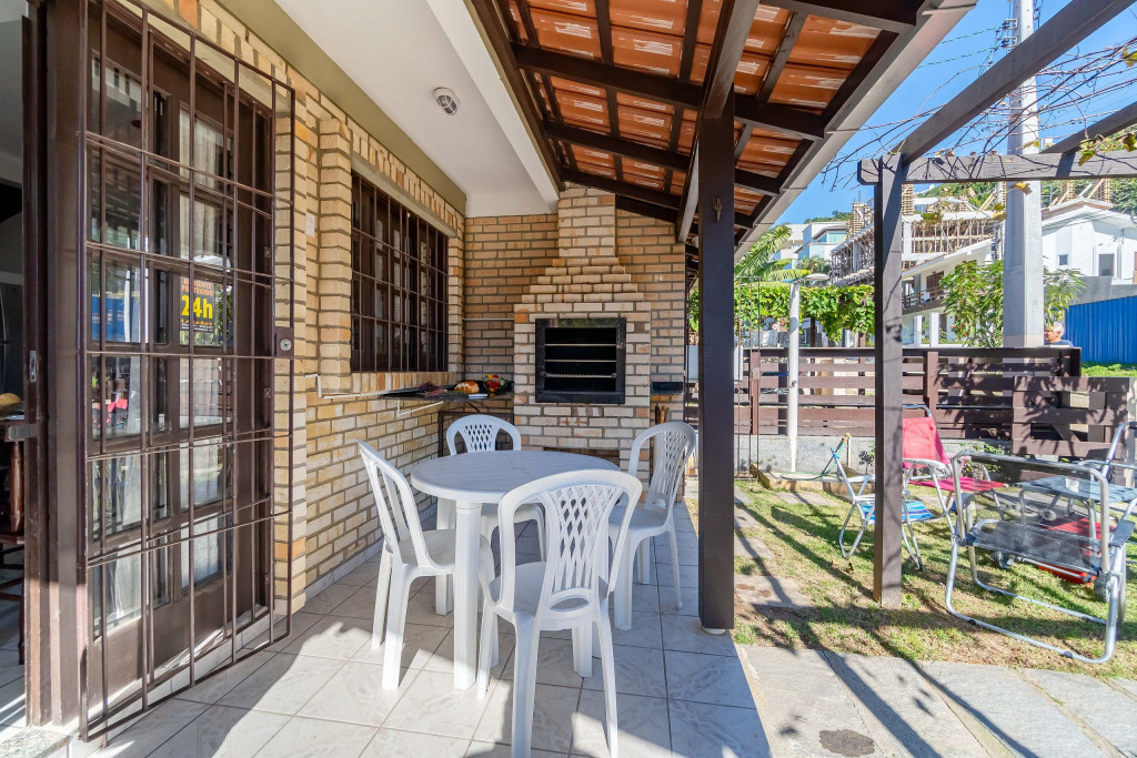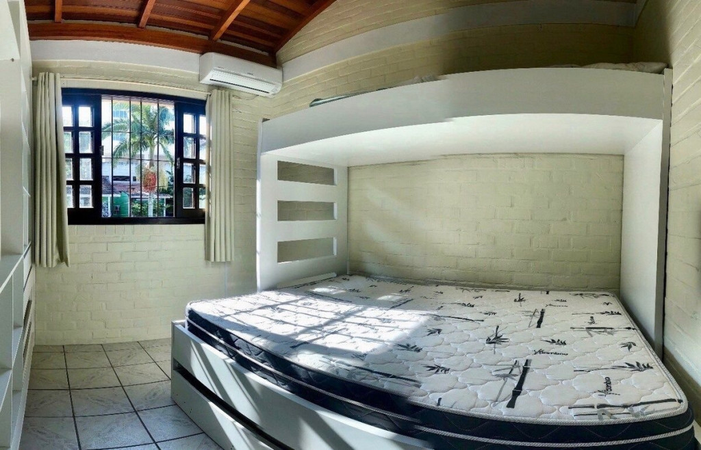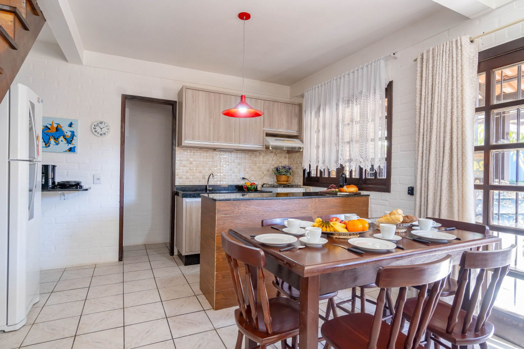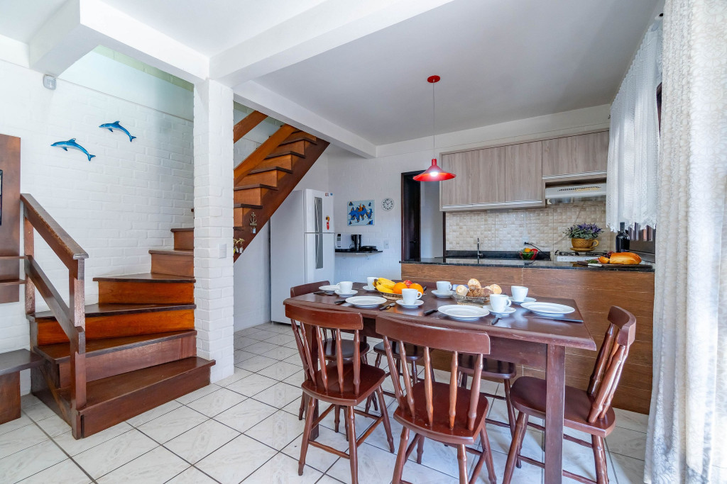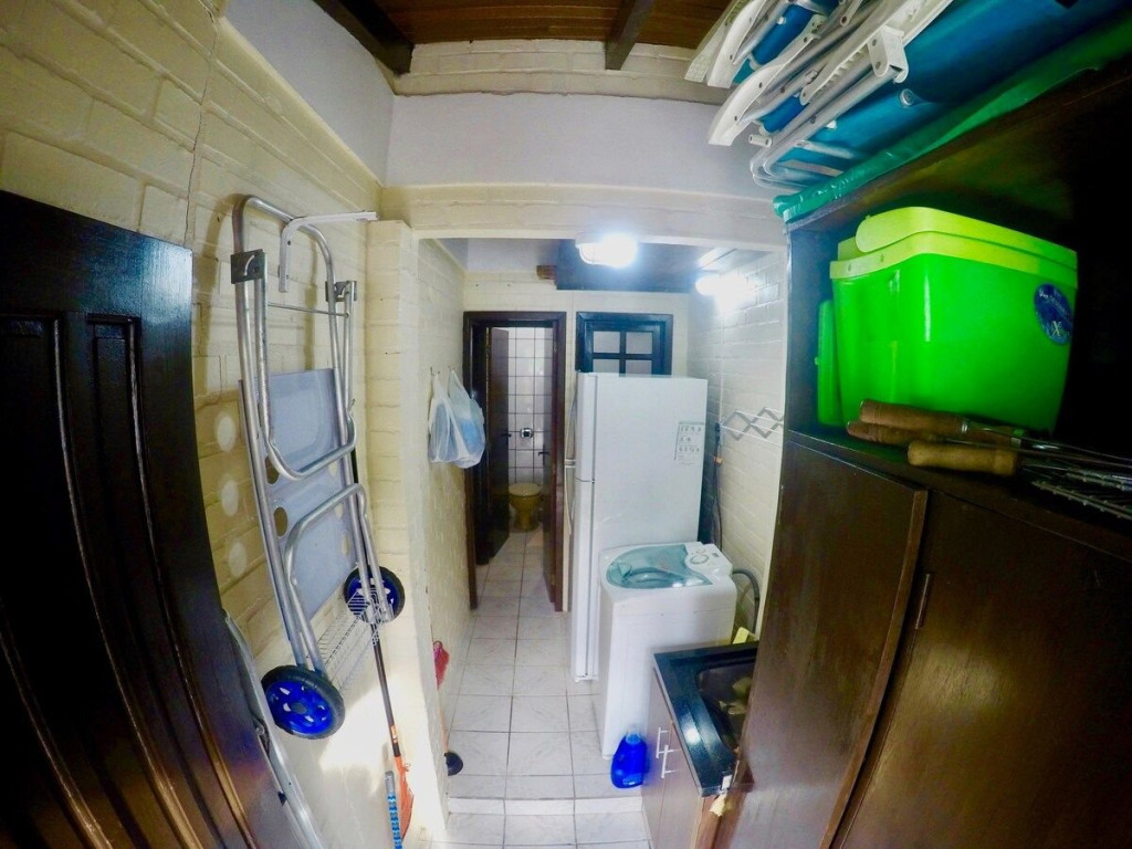 01 Dormitórios de casal; 01 Dormitório cama viúvo + solteiro em cima; 01 Banheiro social Cozinha COMPLETA equipada; Pátio e área com churrasqueira; Área de serviço com máquina de lavar; Vaga de garagem fechada e coberta para 01 carros; Utensílios de praia INCLUSO;