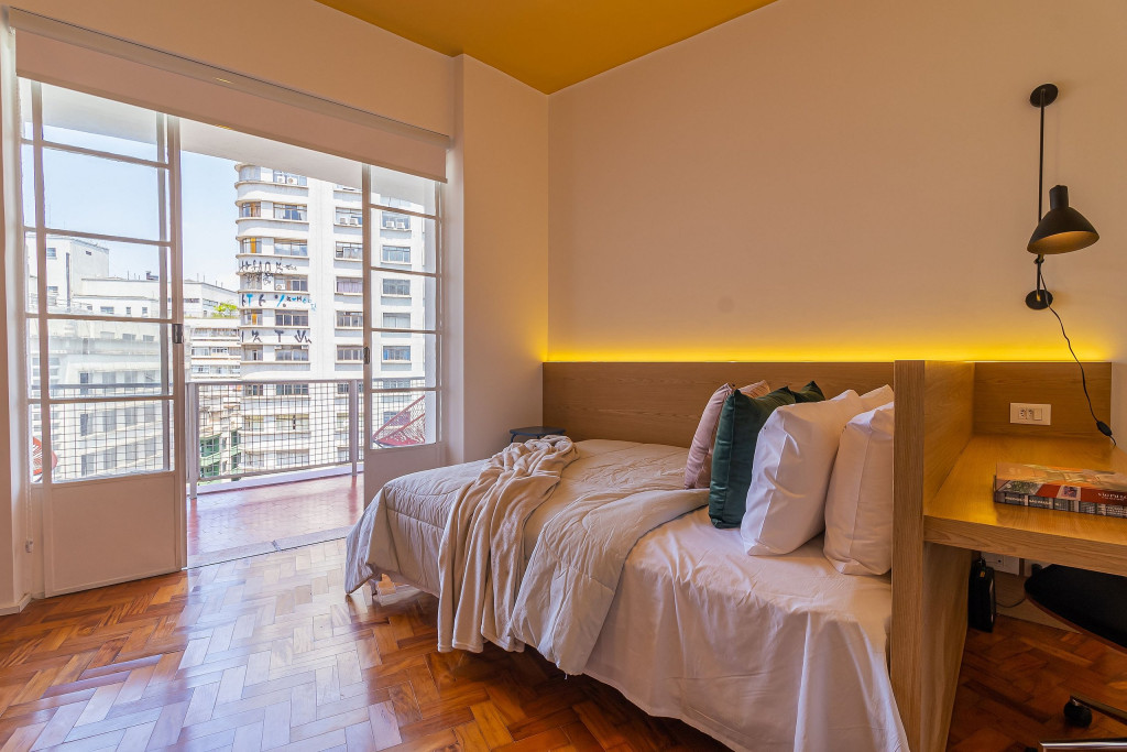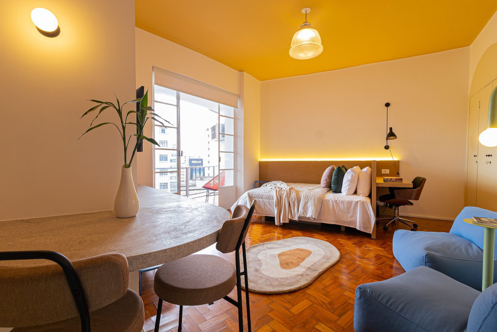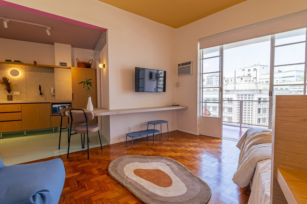 Todo o charme e personalidade do icônico Edifício Marian, no centro histórico de São Paulo, foi trazido para cada elemento deste apartamento localizado em seu 9° andar.