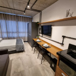 Studio compacto com todas as facilidades para estadia. Recém inaugurado e com todos os utensílios e eletrodomésticos novos.
