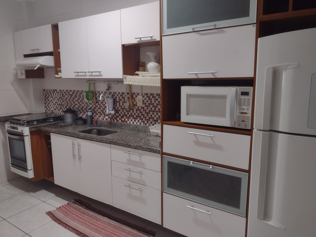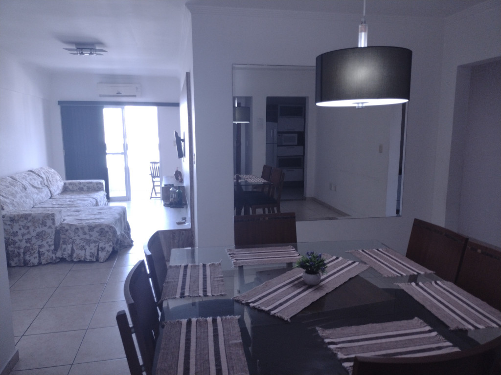 O apartamento é composto por 2 amplos dormitórios com camas confortáveis e armários planejados sendo um deles suíte. Sala grande de Tv, sala de jantar tudo muito amplo. Cozinha completa com todos os utensílios. Banheiro social. Varanda com vista para o mar. Tela de proteção em todas as janelas. Elevador, portaria 24 horas.