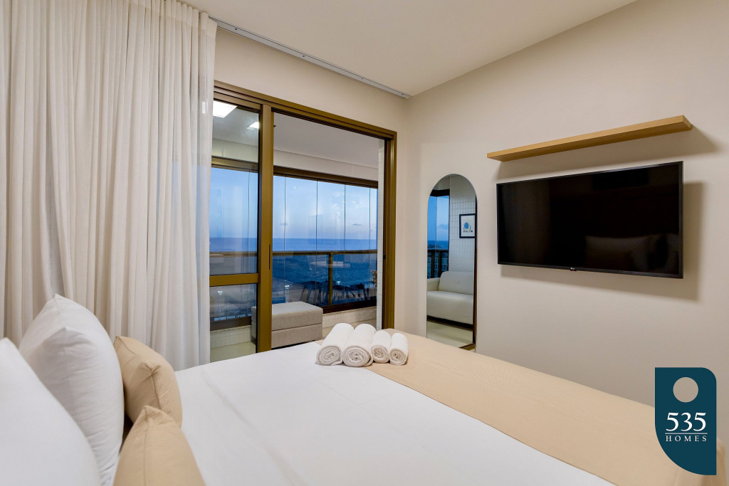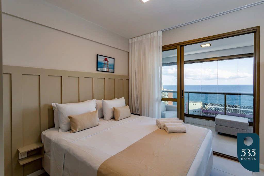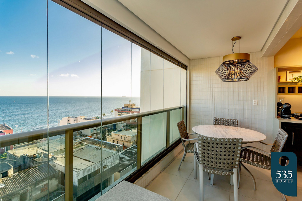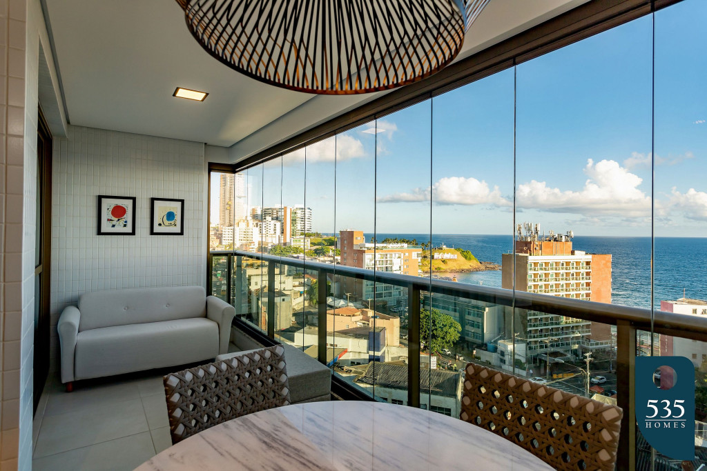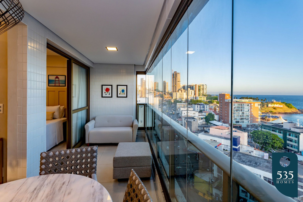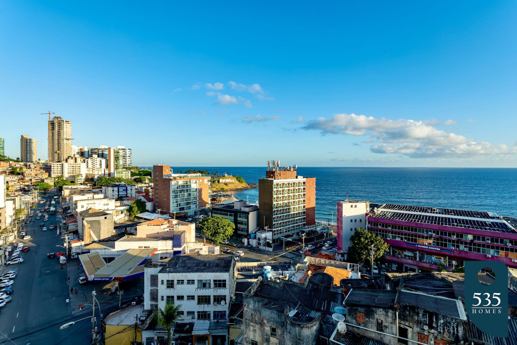 Este apartamento tem uma vista incrível, pertinho da praia da Barra e também do circuito Barra Ondina do Carnaval de Salvador.